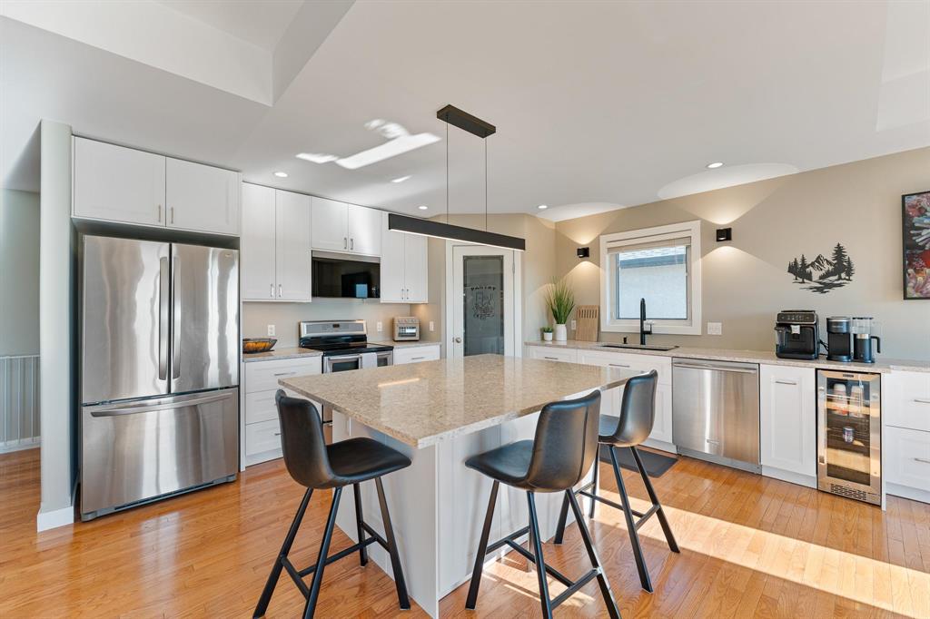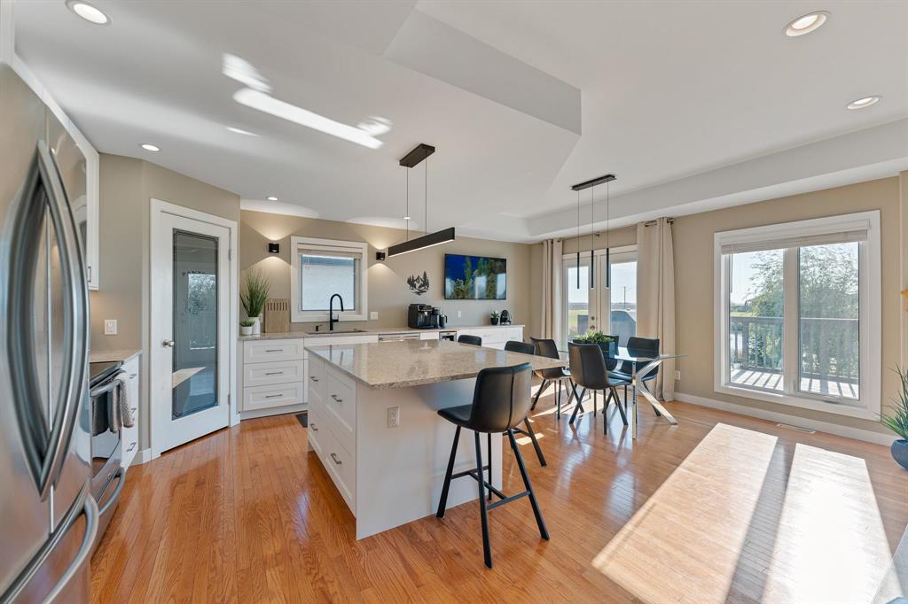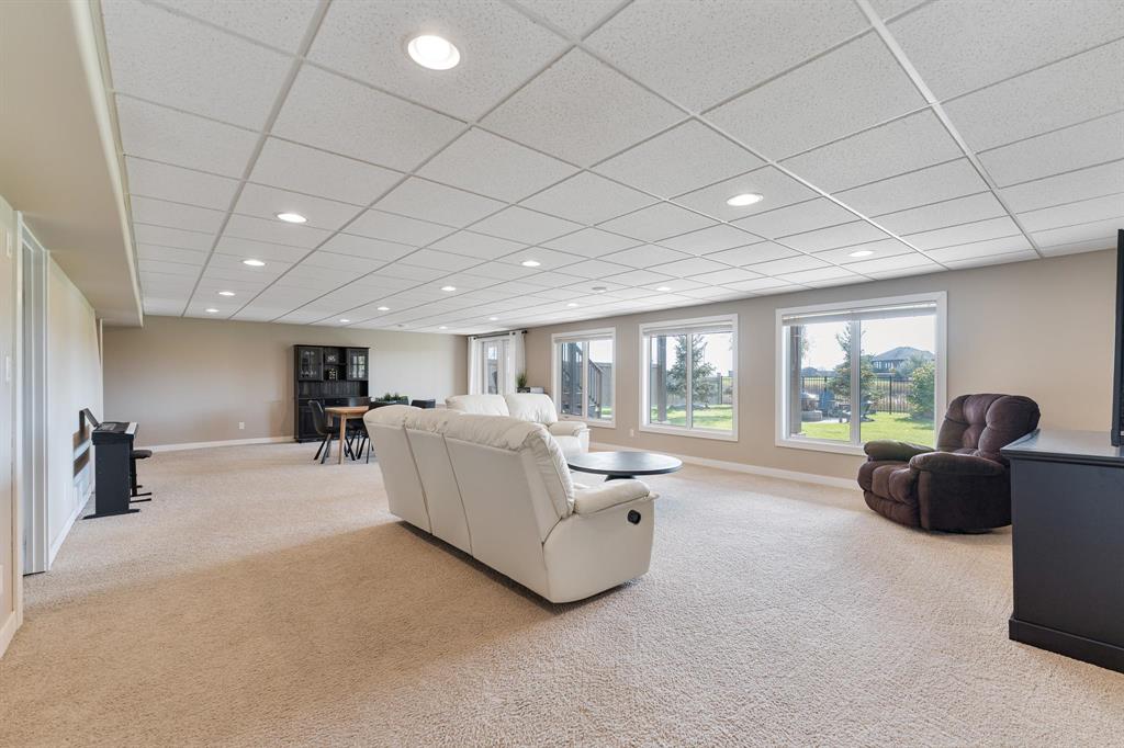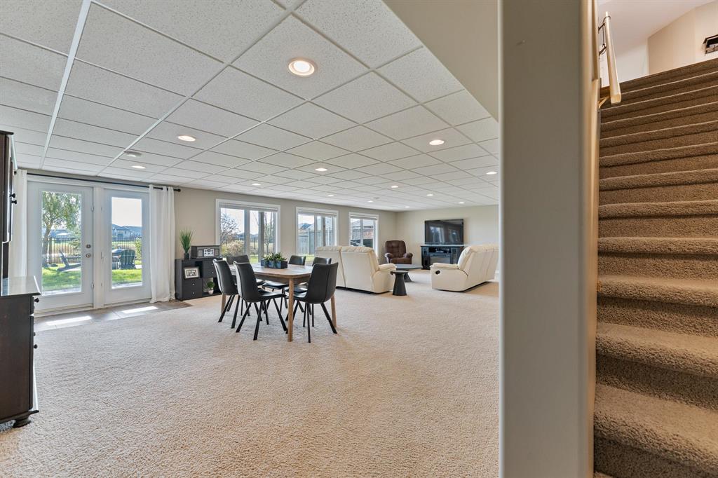 The fully finished walkout basement adds incredible value with two additional bedrooms, a full bathroom, and direct access to the backyard. Step outside to a beautifully landscaped yard featuring a hot tub, fire pit area, and breathtaking lake views. With its prime location, you’ll also enjoy endless prairie views and unforgettable sunrise's.