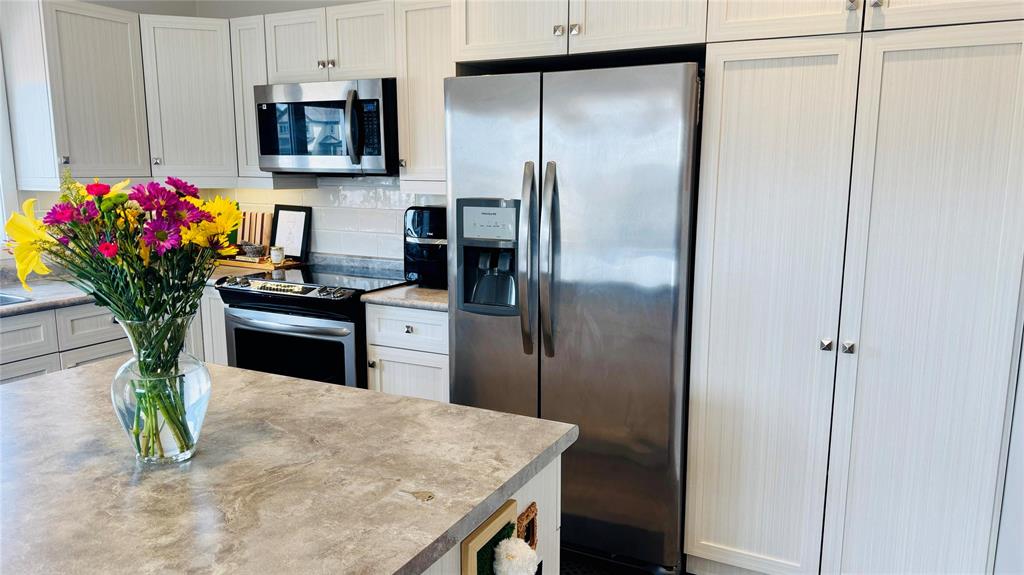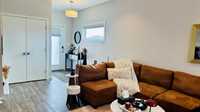Showing start NOW. Need 24 hour notice. House is occupied by tenets . Offer any time. Modern Elegance Meets Show home Quality! Originally was a premium builder’s show home, this stunning 1,500+ sq. ft. two-story corner-lot residence is back on the market. The main floor impresses with 9’ ceilings, expansive windows, and durable vinyl flooring. The heart of the home is an open-concept great room featuring a sleek electric fireplace with tile surround. The functional kitchen and dining area lead directly to your private deck and fully fenced backyard. Upstairs, discover three spacious bedrooms, including a primary suite with a 5’ walk-in shower, plus convenient second-floor laundry. Situated next to a future park and green space, this home offers the perfect blend of style and location without the wait to build. possession available 1st week of June. book your tour today!