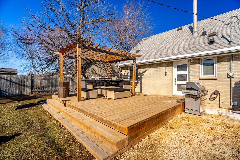 SS now. OH, Sat & Sun April 25 & 26, 2-4pm. OTP April 27 @ 6pm. Charming 1½-storey home with tons of upgrades throughout! Step into a bright living room filled with natural light, creating a warm and inviting atmosphere. The main floor features a spacious bedroom and a beautifully updated 4-piece bathroom for added convenience. The heart of the home is the stunning, fully renovated kitchen complete with quartz countertops, stainless steel appliances, modern backsplash, and sleek finishes—designed for both everyday living and entertaining. Newer living room & kitchen flooring adds a fresh, contemporary feel. Upstairs offers 2 well-sized bedrooms, ideal for family, guests, or a home office. The fully finished basement provides additional living space with a spacious rec room perfect for relaxing or entertaining. Enjoy the outdoors in a massive backyard featuring a deck with pergola, plus a newer storage shed. Front drive access adds extra convenience. Upgrades include: Kitchen, flooring & repainting, shingles (2022), deck with pergola (2020), Main floor bathroom (2019), basement 2 windows (2023), storage shed, and washer & dryer (2024).