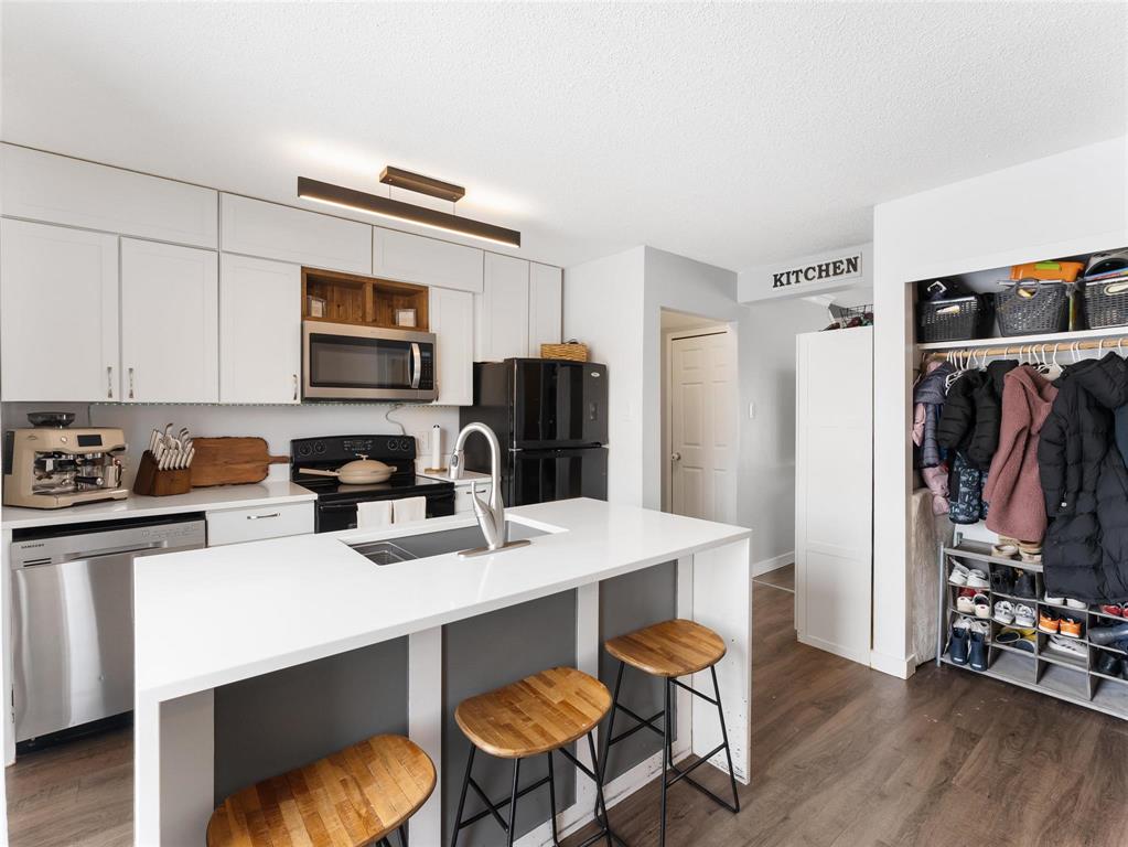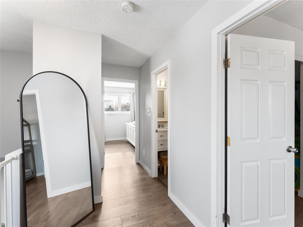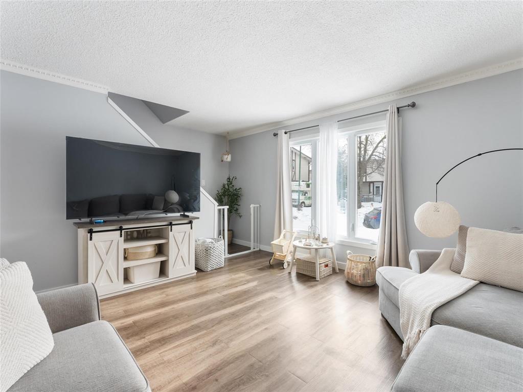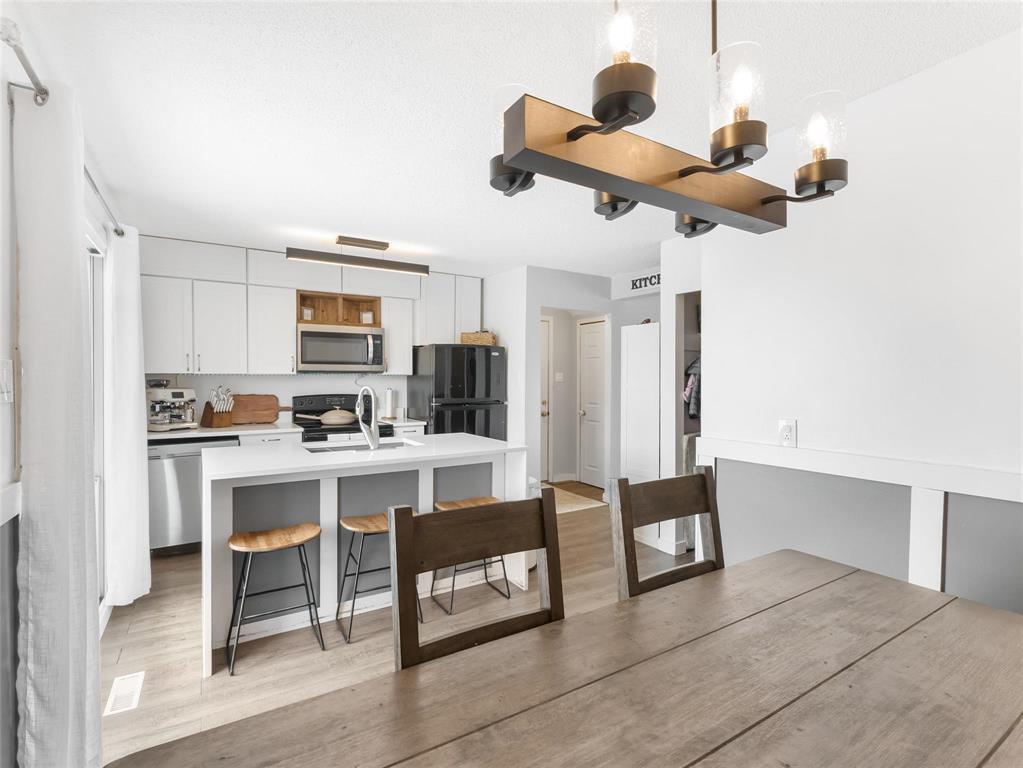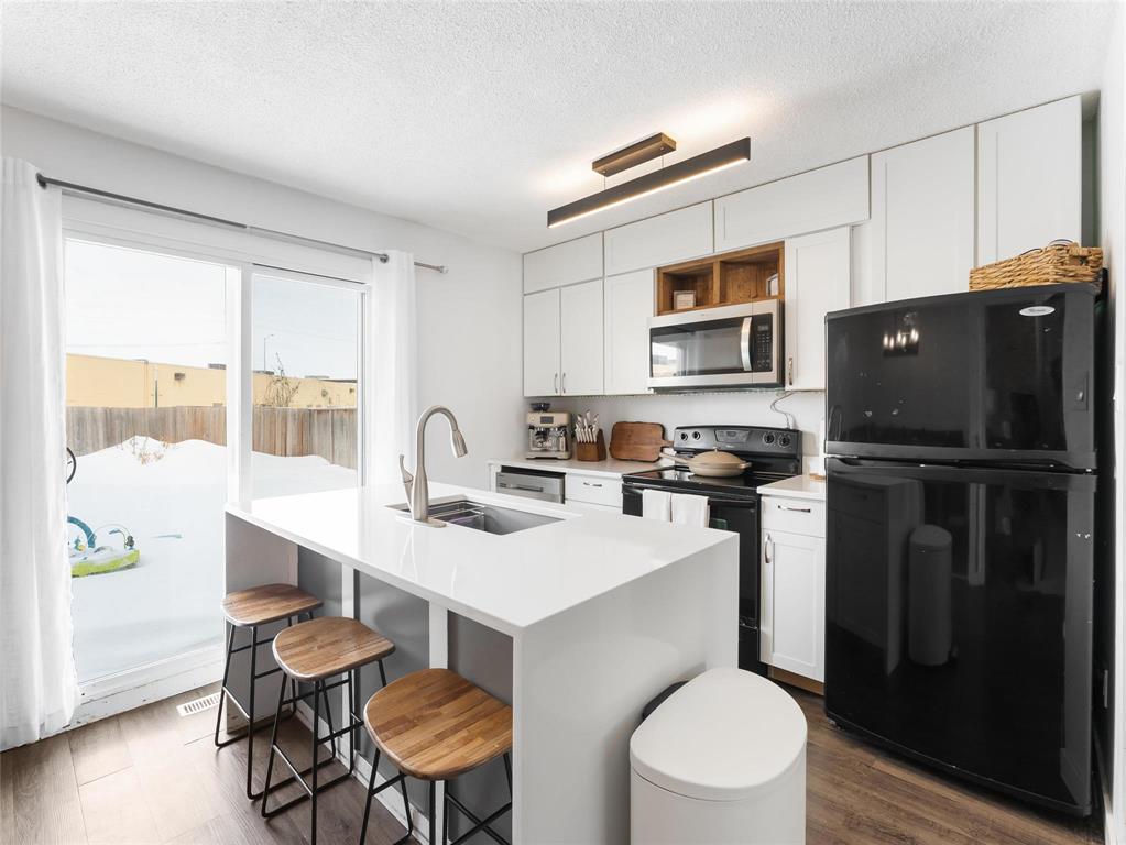 SS April 22/26, Offers April 28th 6pm. Open House April 25th+26th 12-1:30.Welcome to this beautifully updated 1,080 sq. ft. 2 storey home that is perfectly situated on a quiet bay! This well-maintained property offers 3 bedrooms, 1.5 bathrooms, making it an ideal choice for families, first-time buyers, or those looking to downsize. The main floor features a bright + inviting living room w/large front windows that flood the space w/natural light. The fully updated kitchen is sure to impress w/modern finishes, quartz countertops, and a large island, perfect for cooking, entertaining. There’s plenty of room for a full-sized dining table, and patio doors lead directly to the fully fenced, private backyard, ideal for kids, pets+summer enjoyment. Upstairs, you’ll find 3 bedrooms, including a spacious primary suite with a large walk-in closet. The renovated full bathroom adds a modern touch, while the additional half bathroom on the main floor provides added convenience. New laminate flooring throughout, Newer windows + newer shingles. The fully fenced yard, front driveway, + quiet bay location enhance both comfort + practicality. Located close to parks, the hospital, public transit, and all major amenities.