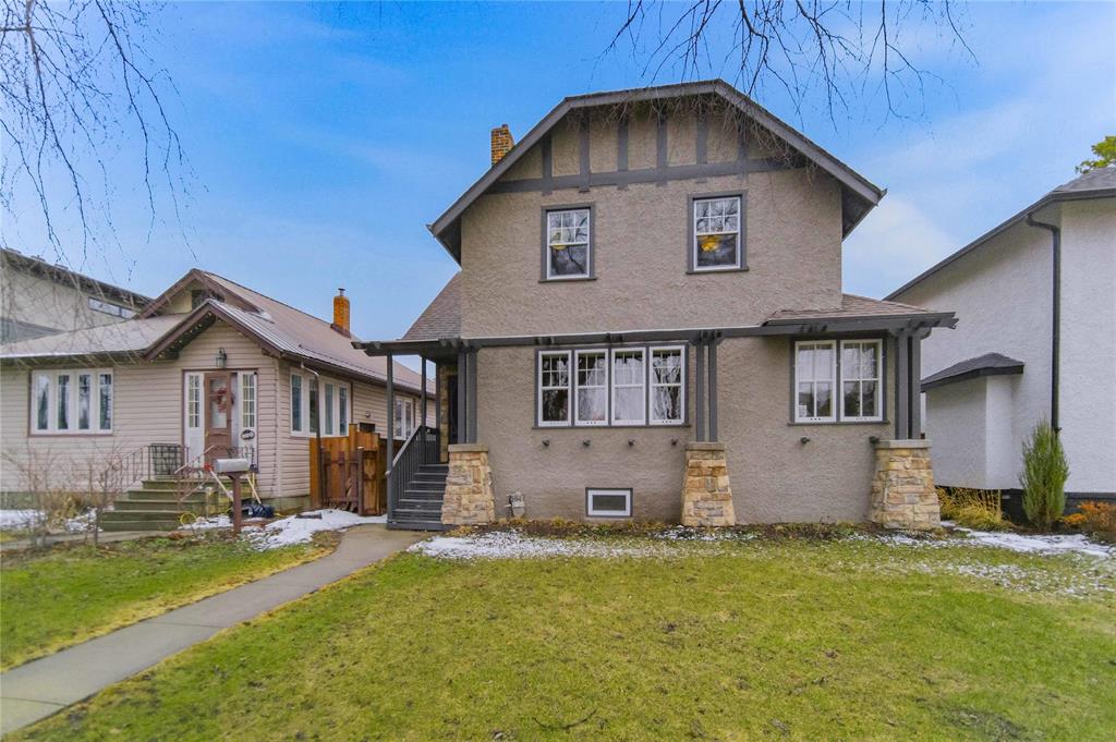 SS Now, OTP 04/28 at noon. Open House Saturday April 25 12-2PM. Welcome to 188 Queenston Street in the heart of North River Heights, just a short stroll to schools, restaurants, and the shops along Academy. This 4 bedroom, 2 bathroom home offers the perfect balance of timeless character and thoughtful updates. From the moment you step inside, the stunning original staircase sets the tone, complemented by beautiful hardwoods, classic trim, and French doors throughout the main floor. The space flows effortlessly from a warm and inviting living room with a working brick wood burning fireplace, into a sun filled south facing sunroom, and through to the open concept kitchen featuring quartz countertops, stainless steel appliances, and plenty of storage. The main floor is anchored by a spacious dining area made for gathering. Upstairs, you will find three generous bedrooms and a beautifully updated 4 piece bathroom with heated floors. The finished basement offers great ceiling height, a large rec room, fourth bedroom, and a 3 piece bath with laundry. Outside, enjoy a landscaped yard, double garage, and additional parking. Classic River Heights charm, elevated for modern living. This is one you HAVE to see.