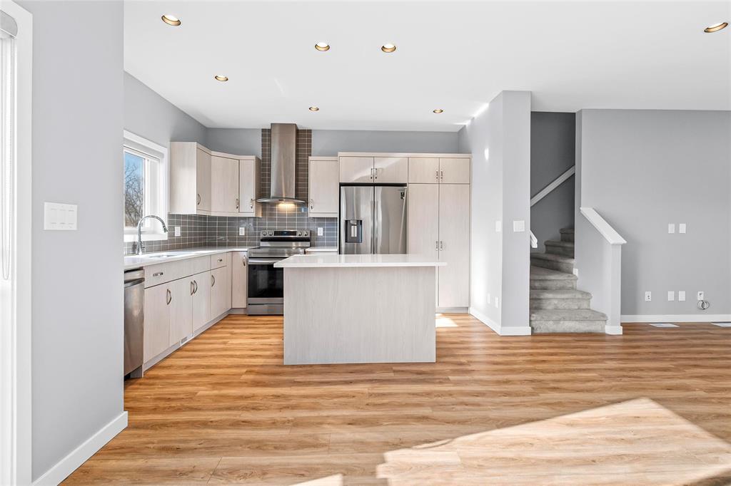 SS Now. Offer April 29. Open House Sat/ Sun 2-4 pm. Welcome to this stunning, move-in-ready 2 story attached house in the prestigious development of Highland Pointe. Designed with a focus on sophisticated aesthetics and functional luxury, this property offers seamless blend of contemporary style & high-end finishes. The open-concept main floor is anchored by a gourmet kitchen featuring quartz countertops, chimney rangehood & custom backsplash. High-end details like soft-close cabinetry, a center island, and new appliances make it a culinary dream. A "piano window" provides natural light while maintaining privacy, and extra pot lights with dimmers allow for customizable lighting. Master bedroom on second floor features an upgraded awning window for optimal airflow, a generous walk-in closet & a private, three-piece ensuite bathroom. Two additional spacious bedrooms provide ample closet storage and share a three-piece main bath. The dedicated laundry room is strategically located on this level to eliminate the need for carrying heavy baskets between floors. The lower level offers a versatile, unfinished basement designed to be built to suit your specific requirements. All measurements are +/- Jogs