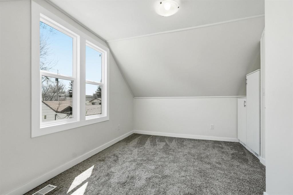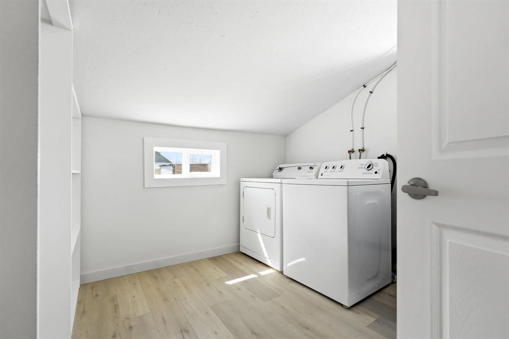 OTP April 28th*OPEN HOUSE Sunday April 26, 1–3PM*Don’t miss this fantastic opportunity to own a beautifully updated 3-bedroom, 2-bathroom home on a quiet block! The main floor showcases a stunning modern kitchen with stainless steel appliances (fridge, stove, dishwasher), quartz countertops, tile backsplash, under-cabinet lighting, custom cabinetry, and sleek fixtures. The spacious family room is filled with natural light from a large window. The primary bedroom offers new carpet and a custom built-in closet, alongside a stylish 4-piece bath with tile tub surround and contemporary finishes. Enjoy luxury vinyl plank flooring throughout the main level, plus convenient main floor laundry and mechanicals including a high-efficiency furnace and new hot water tank (’25). Upstairs features two generous bedrooms with built-in closets, storage and a 2-piece bath. Additional highlights include central A/C, some upgraded windows, and a fenced yard. Ideally located near all levels of schools, parks, a community centre, shopping, major routes, and public transportation. This move-in ready home has it all!
