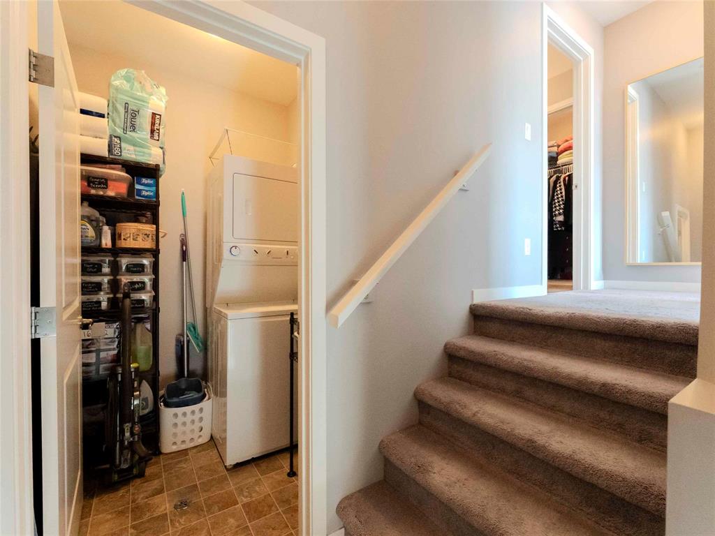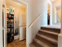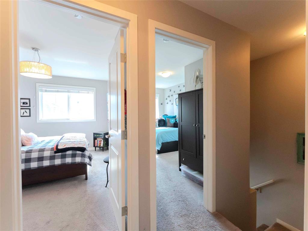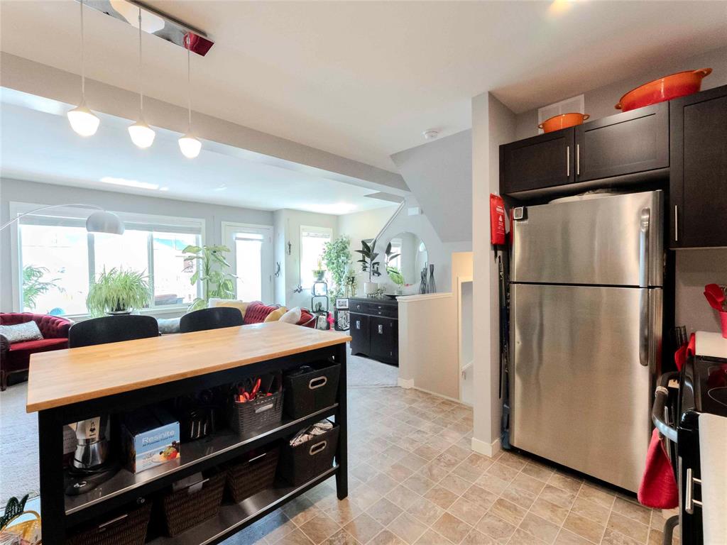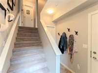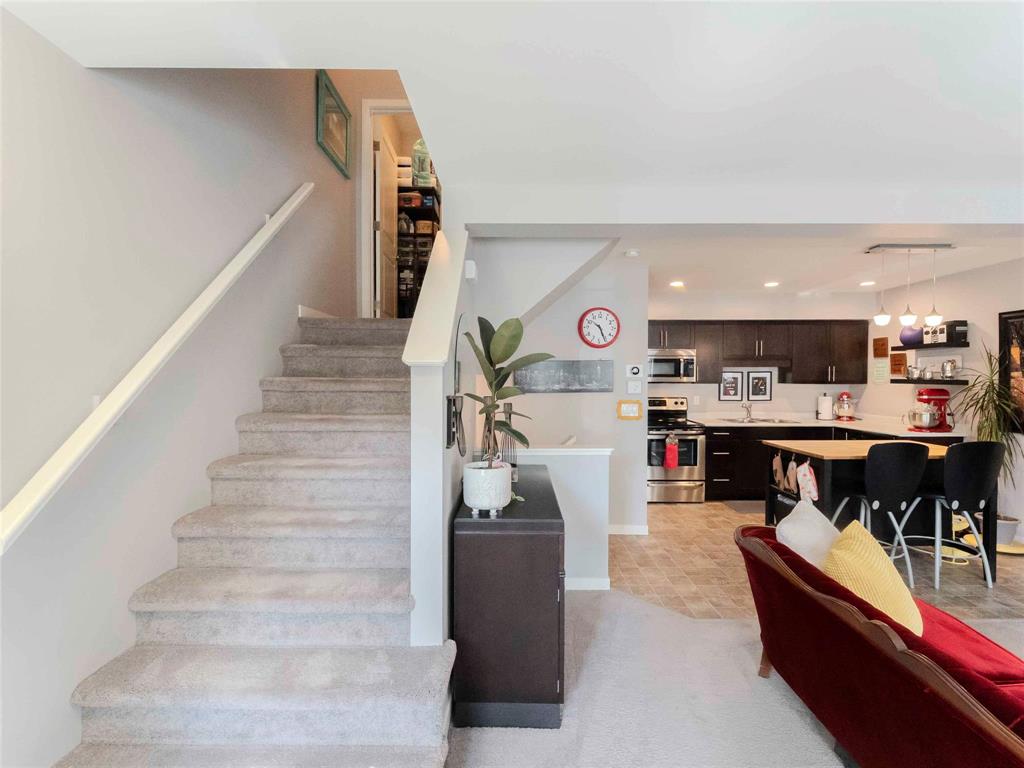 Showings start April 25th, Offers as Received!! Stylish townhome with attached garage in a highly sought-after community! This modern 1,100 sq. ft. home offers 2 bedrooms and 1.5 bathrooms, combining comfort, functionality, and style. The main floor features a bright, open-concept layout with a functional kitchen overlooking the living and dining areas, perfect for everyday living and entertaining, plus a convenient powder room for guests. Upstairs, you’ll find two well-sized bedrooms and a full bathroom and a convenient laundry room. Enjoy your morning coffee or unwind in the evening on the private balcony. Additional highlights include an attached insulated garage with concrete driveway, high-efficiency furnace, central A/C, and HRV system, Custom fit blinds with removable slats. Ideally located close to visitor parking for added convenience, and just minutes from schools, shopping, parks, walking trails, and transit. Whether you’re a first-time buyer or investor, this home offers incredible value in a fantastic location.
