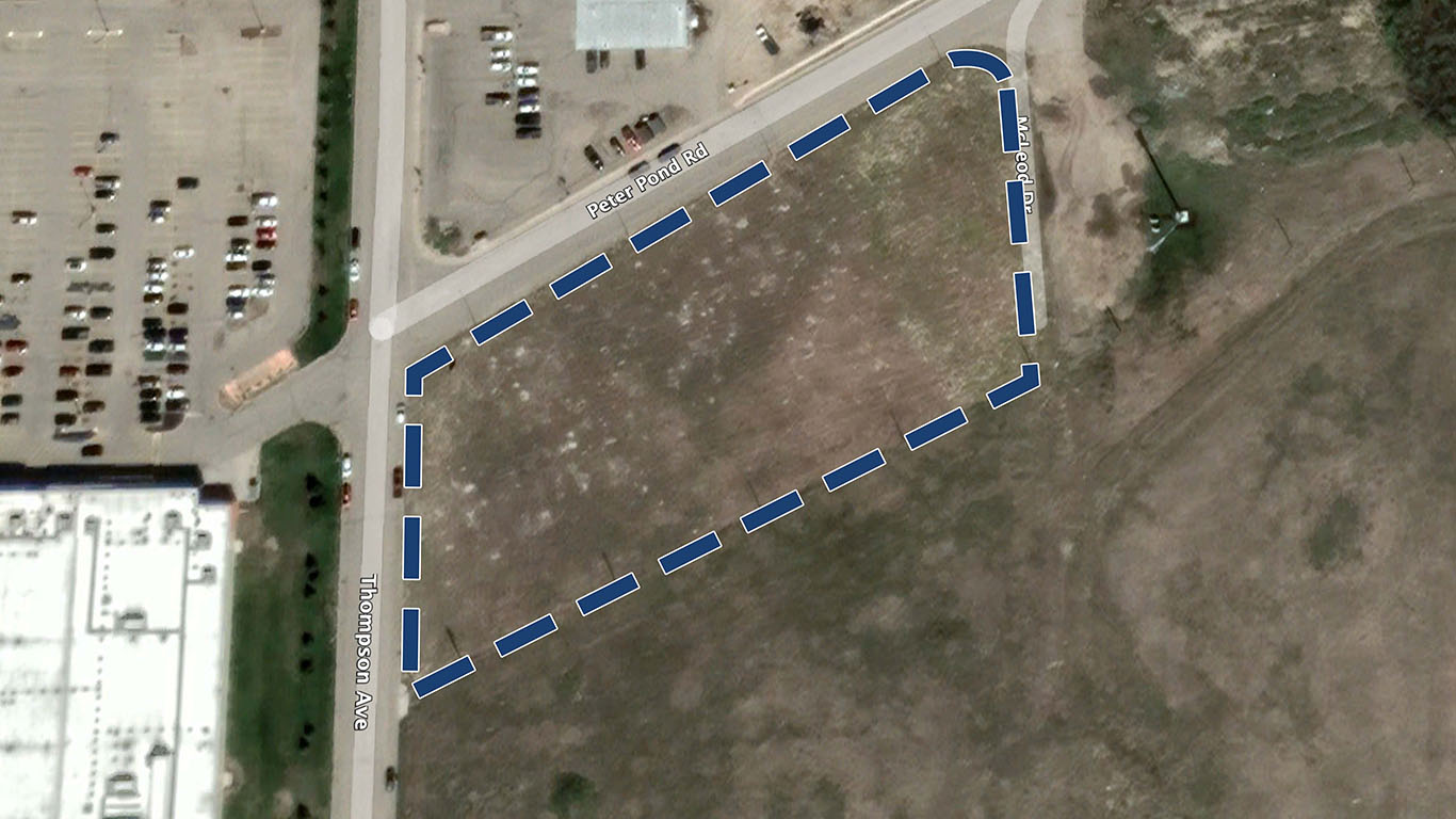 Land for sale in Yorkton, Saskatchewan, adjacent to Walmart Supercentre. Ideal for commercial, multifamily, hotel, industrial, and office uses.