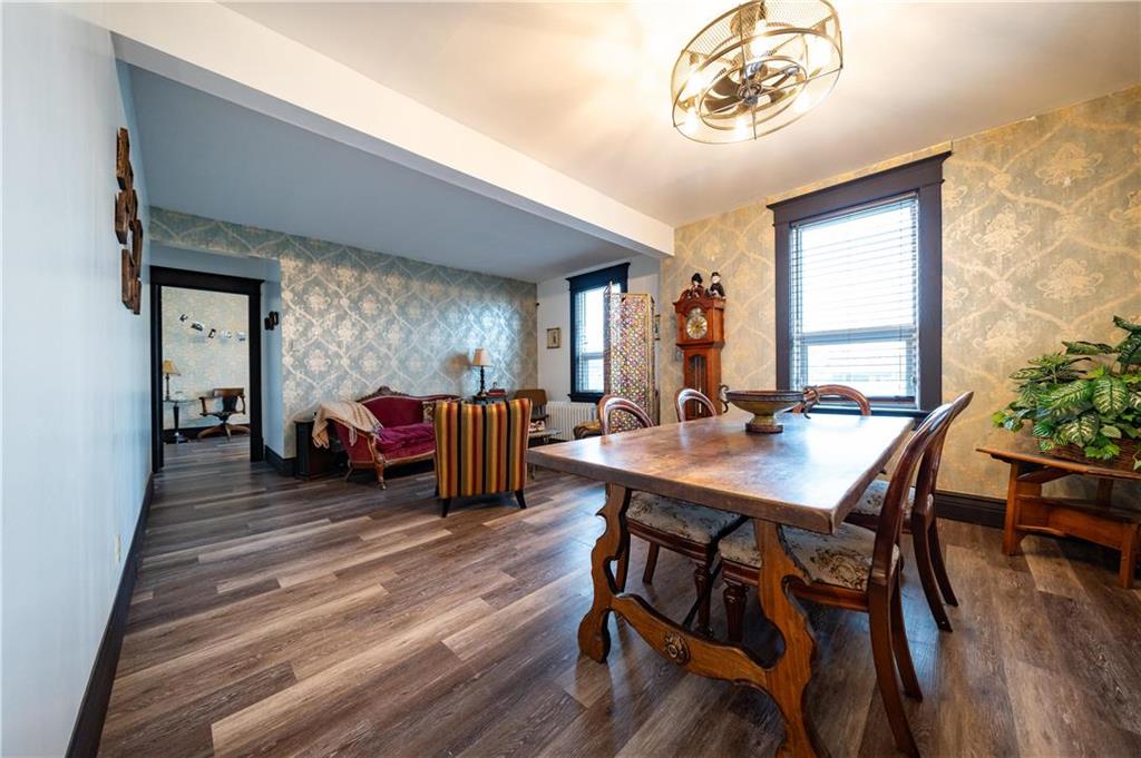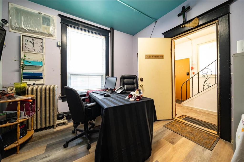 PRICE REDUCED! PRE-INSPECTED, HIGH TRAFFIC EXPOSURE STAND ALONE COMMERCIAL BUILDING with commercial, multi-tenant & residential/caretaker zoning. Through the large front street\porch area doors into the main floor commercial storefront space, complete with original display cabinets & original brick fireplace (not operational), private back office, employee kitchen & bathroom. The basement has dedicated retail storage areas, and laundry room with newer appliances and hot water tank. The second floor offers a welcome front foyer, 2 large beds, and updated kitchen and appliances (‘22) a full bath with steam shower, large living & dining room & storage rm. Upper floor offers residential zoned space for proprietor/caretaker, 1 bed, family room, 1 full bath, & eat-in kitchen (‘22) Sale includes all fixtures, appliances, and dedicated, 24/7, 365 reserved rear surface parking spots. Custom designed flooring (‘21) some windows (‘21-‘24) and updated kitchens on second & upper floors ('22). Quick possession is avail