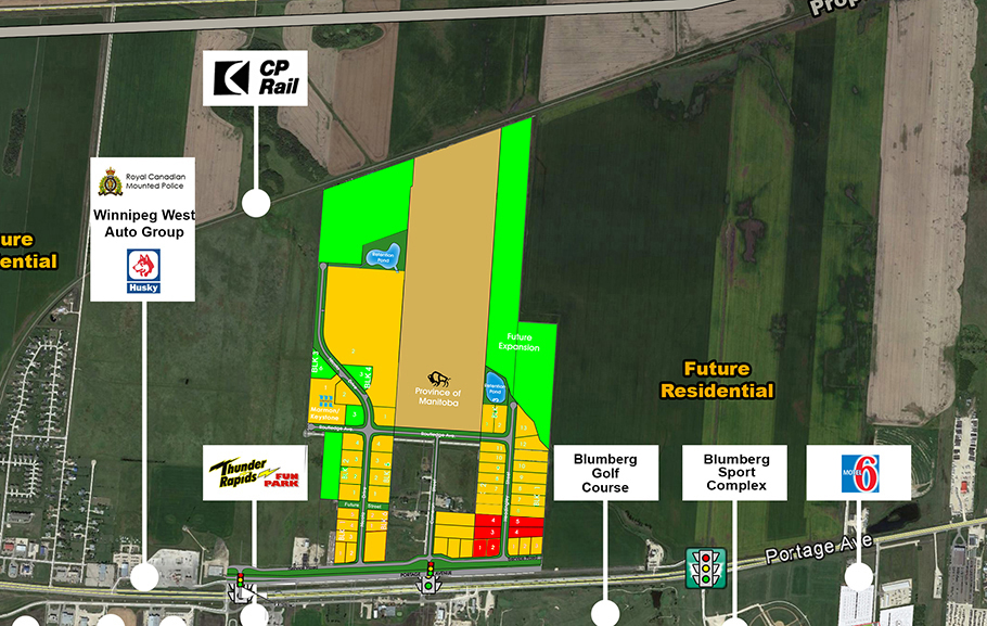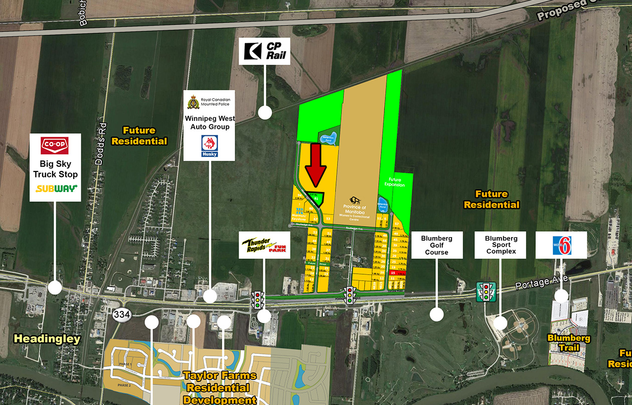 Located 5 minutes west of the Perimeter Highway. Access to Trans Canada Highway with controlled intersection. Growing community with over 400 residential lots to be built in the next 5 years.
