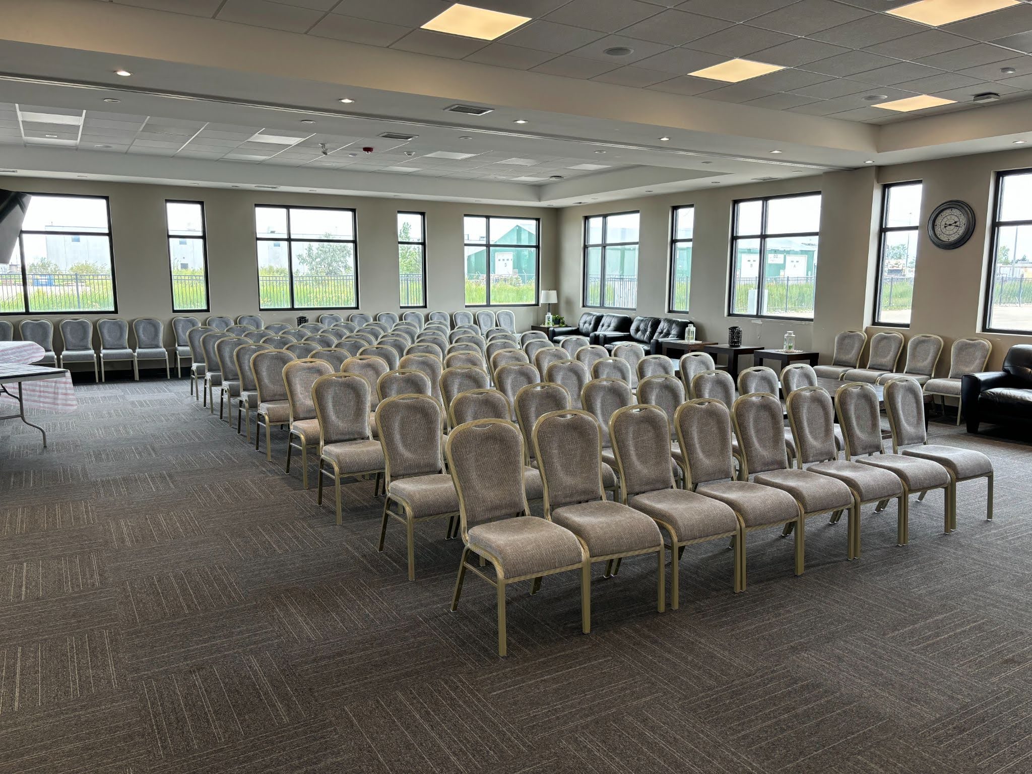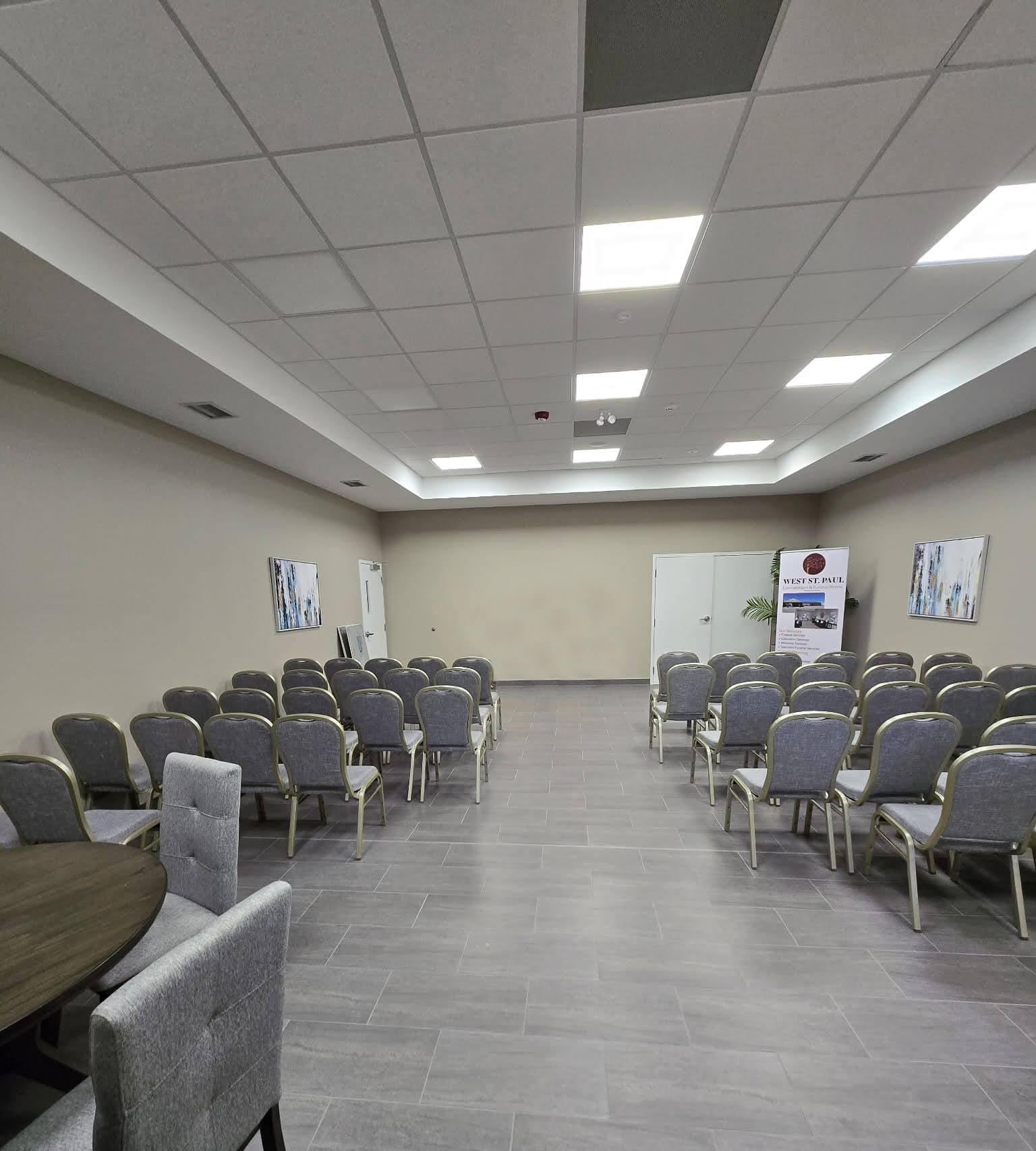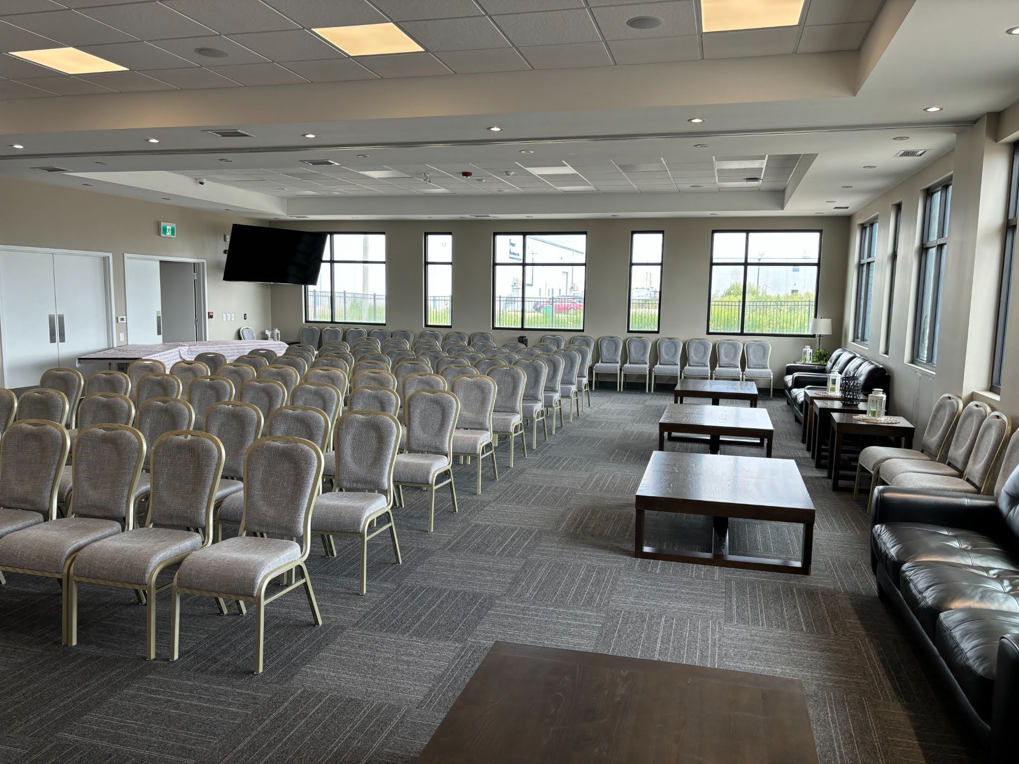 Situated inside the Perimeter Highway, 92 Merit Crescent in West Saint Paul, MB, is a large-capacity event facility that underwent substantial renovations in 2021 and includes multiple high capacity ceremony spaces. The property was recently used as a crematorium, with equipment remaining in place. Freshly paved and striped parking lot with well over 100 spots. One 8′ x 12′ overhead door with interior loading area equipped with gas-fired heater. Beautifully finished with modern fixtures, equipment, and furnishings. Site is fully fenced with attractive fencing. Extensive washroom facilities, modern HVAC systems, generous foyer and numerous smaller office spaces.