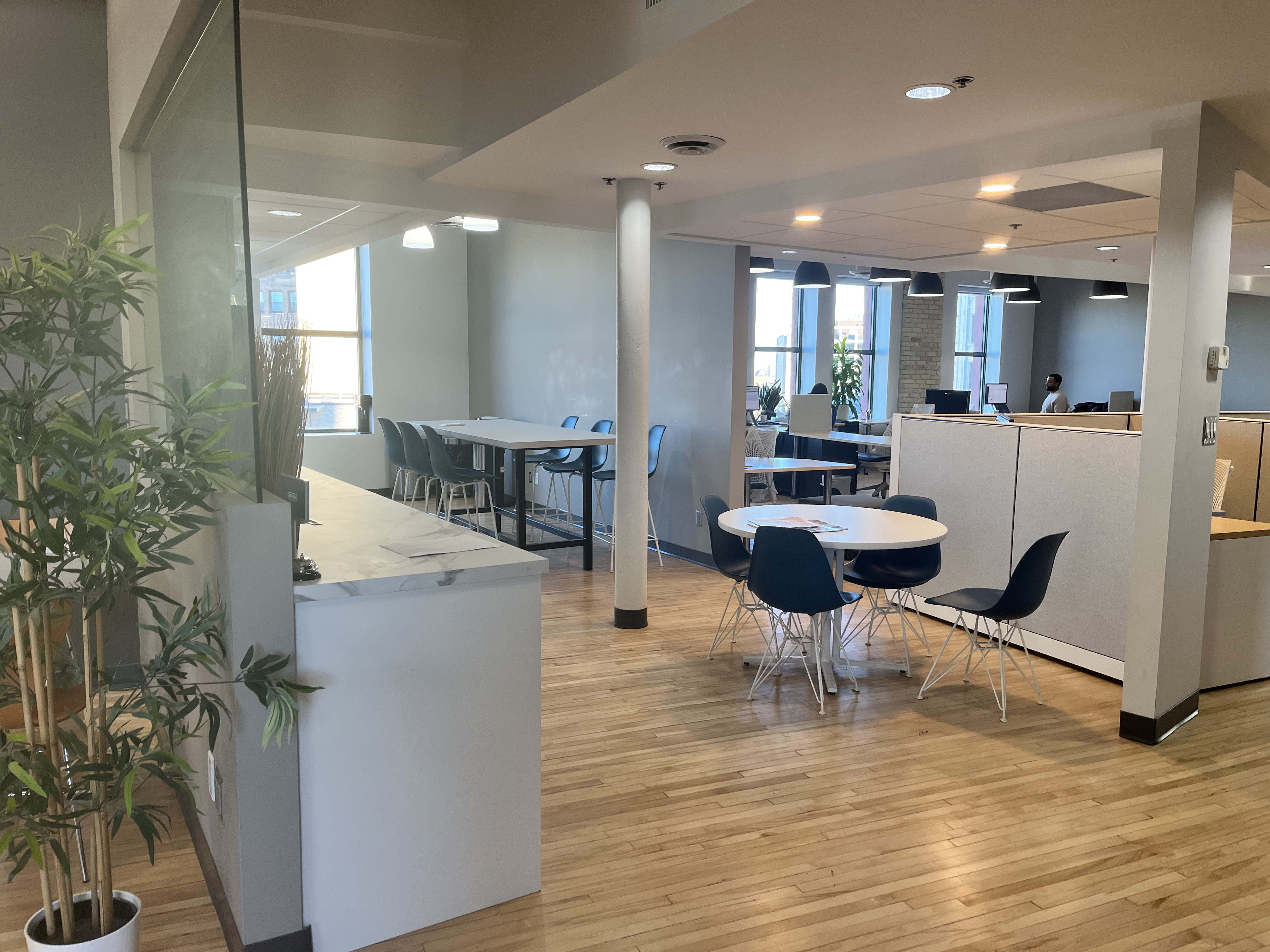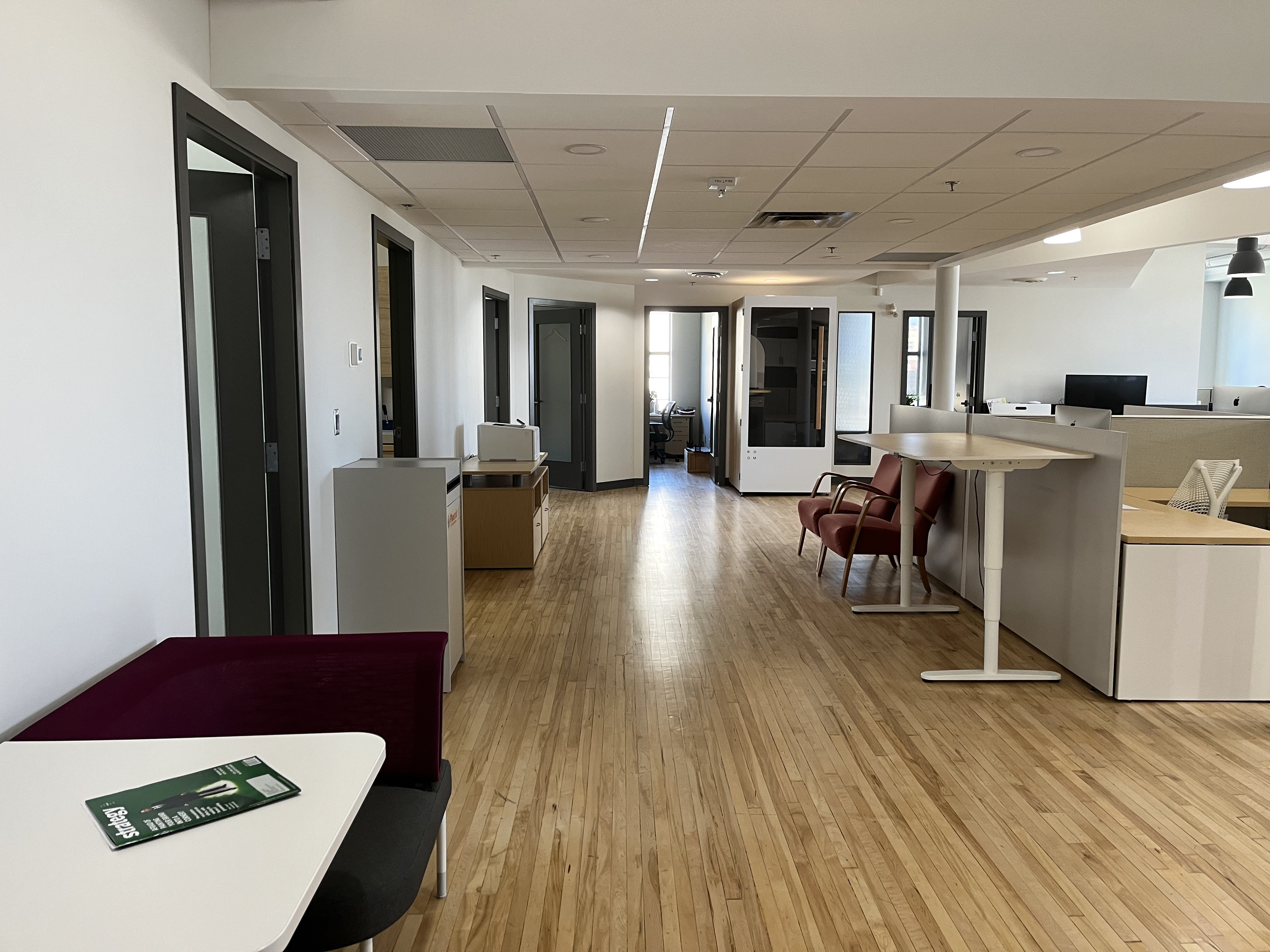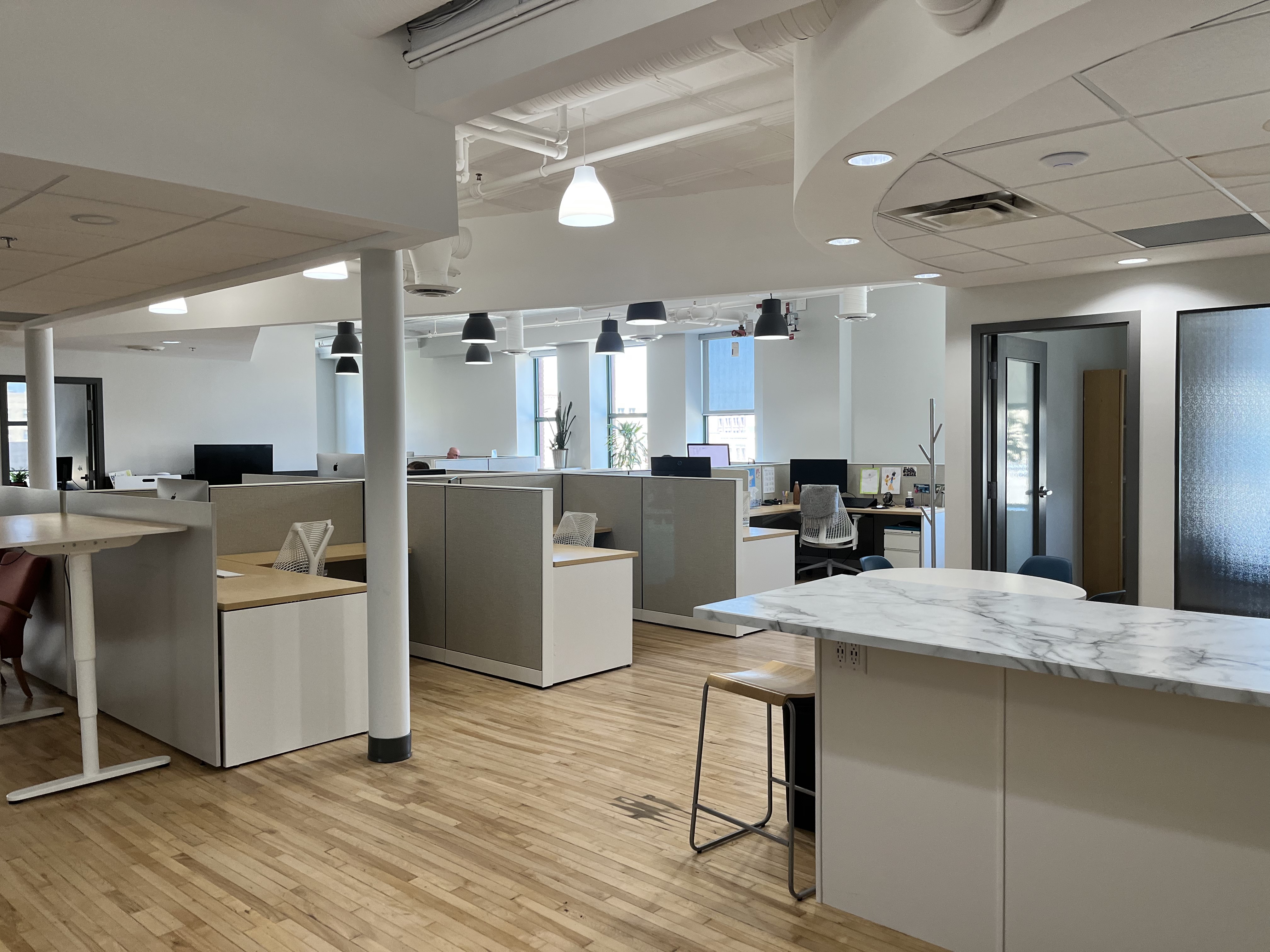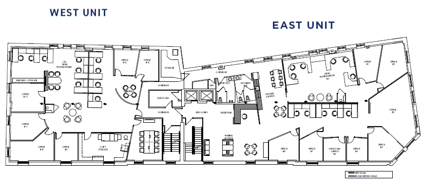 The west unit includes seven private offices, one of which is perfectly suited for use as an executive office or meeting room. A dedicated IT room and mailroom support seamless day-to-day operations, while a large central open area provides flexibility for various desk layouts, easily adapting as your team grows.