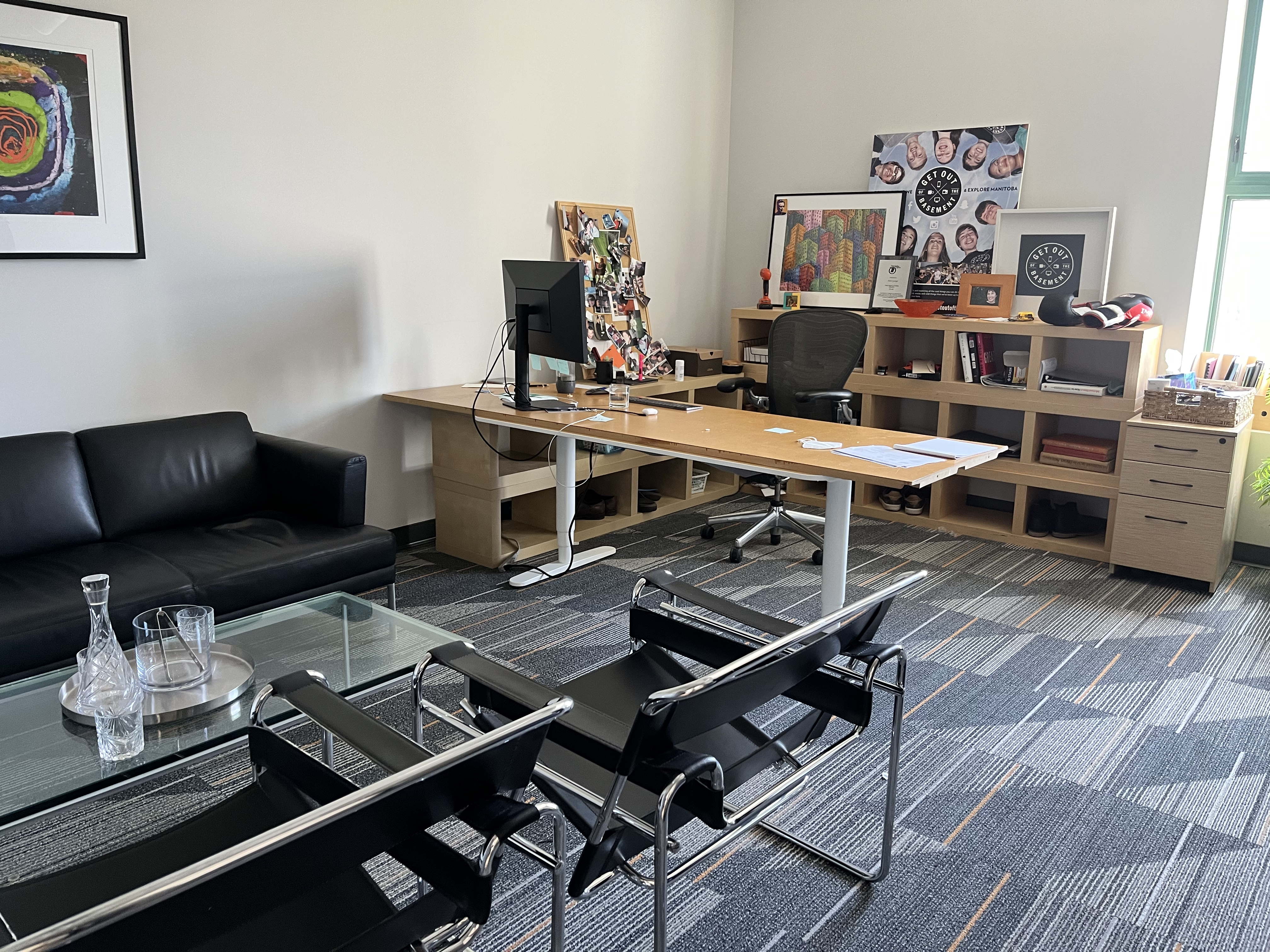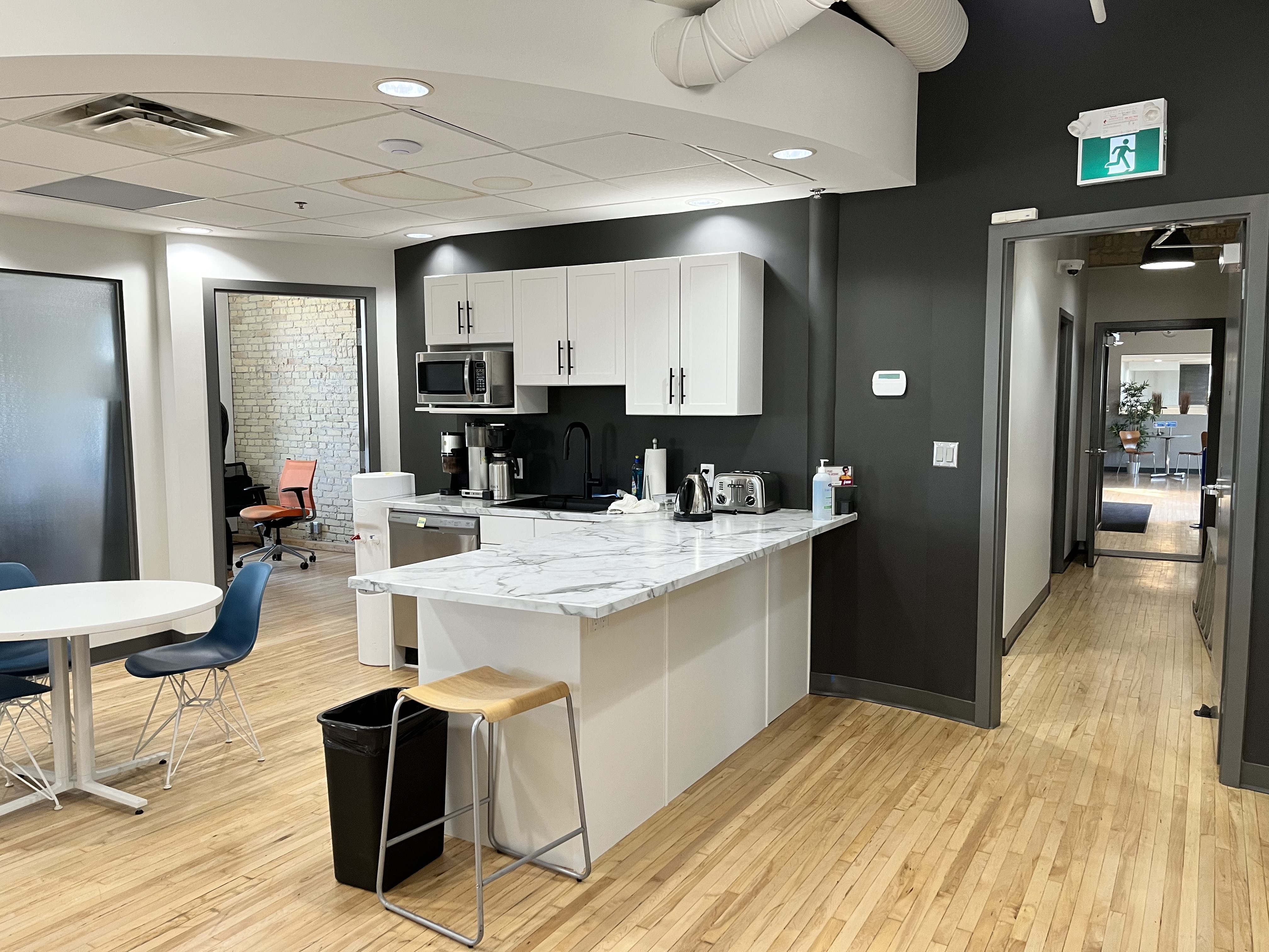 Fully renovated in 2021 and 2022, this office space blends historic charm with modern finishes, featuring updated design, high-quality fixtures, and a bright, contemporary aesthetic. Expansive windows wrap the space, flooding every corner with natural light and offering stunning views of Winnipeg’s vibrant Exchange District.