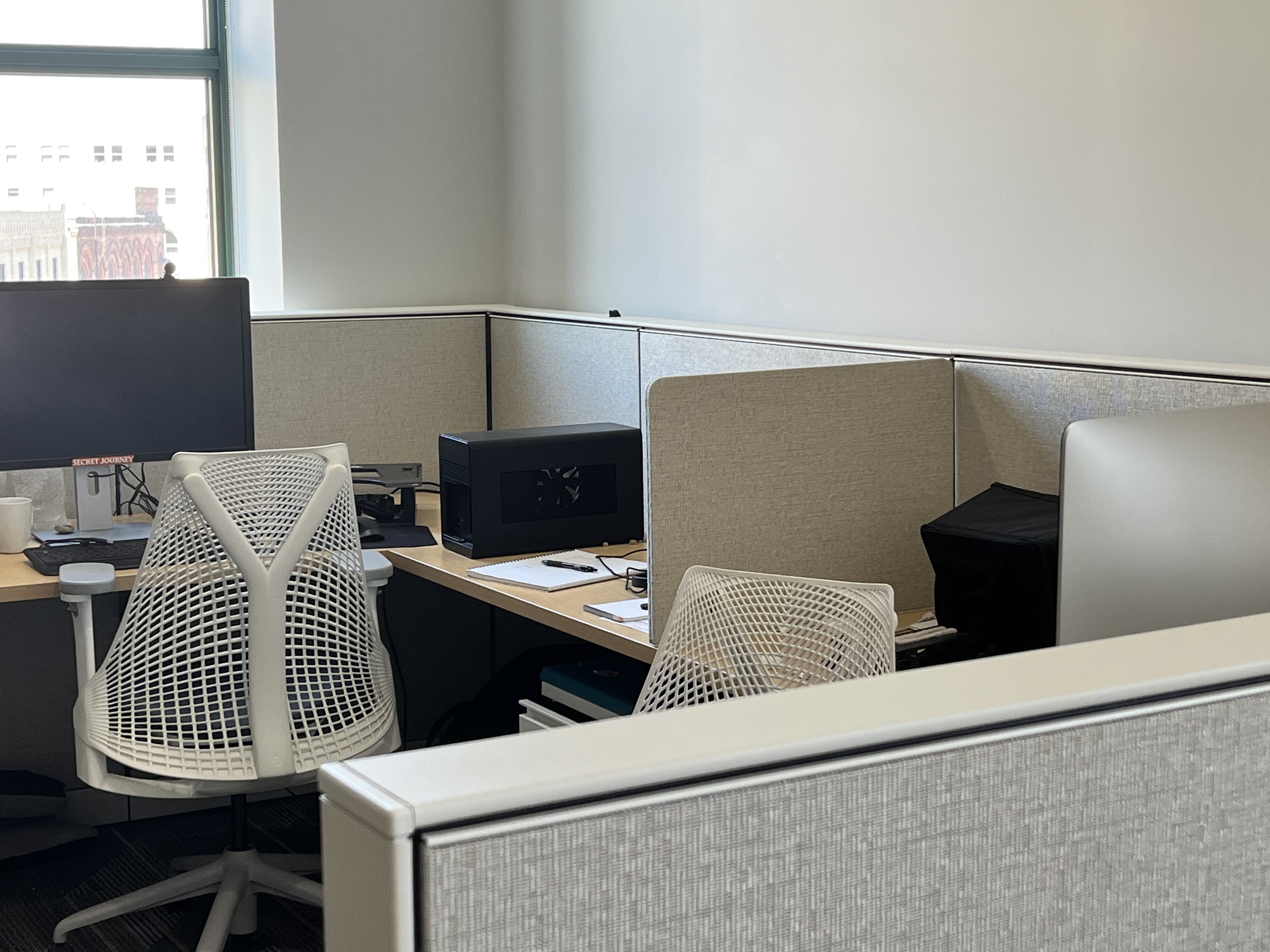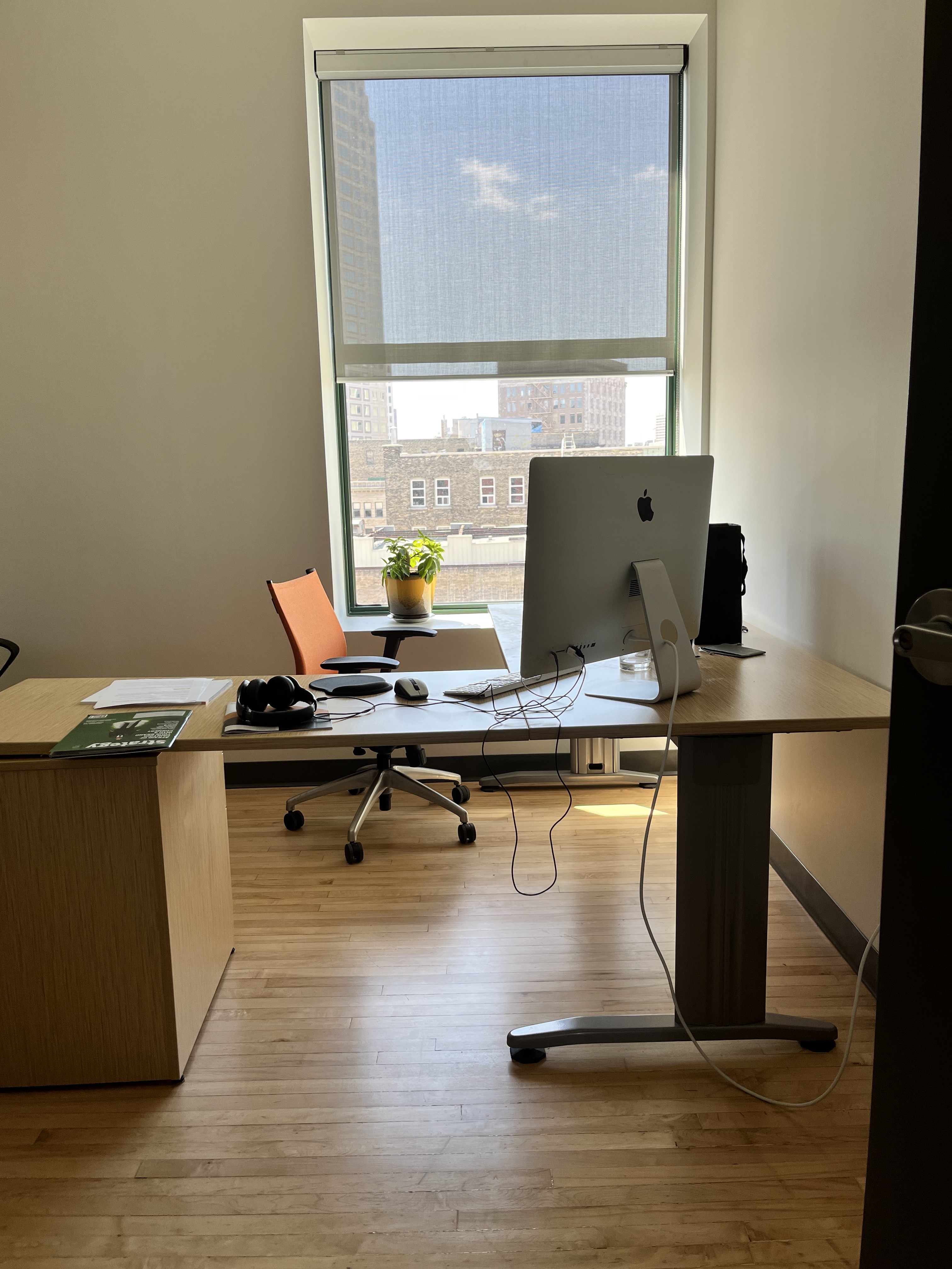 Each office is outfitted with large windows, creating a bright work environment. Tenants benefit from access to underground heated parking with elevator service, along with ample additional parking in the surrounding area, including a lot adjacent to the building.