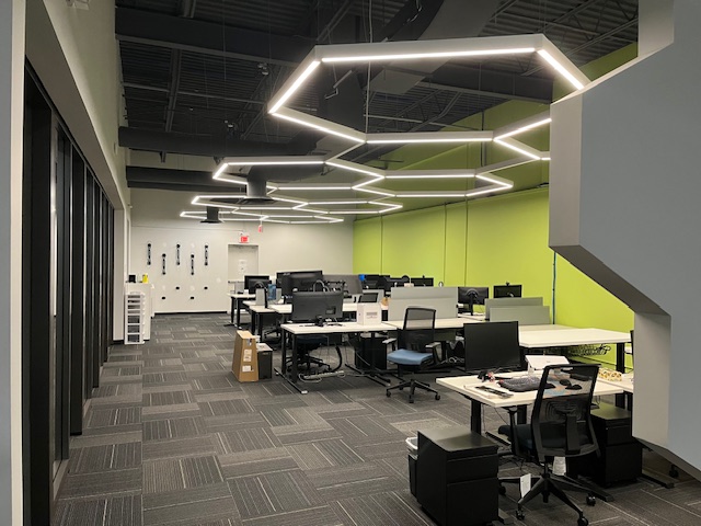 - Space consists of private offices, boardroom, lunchroom, and a collaborative open area