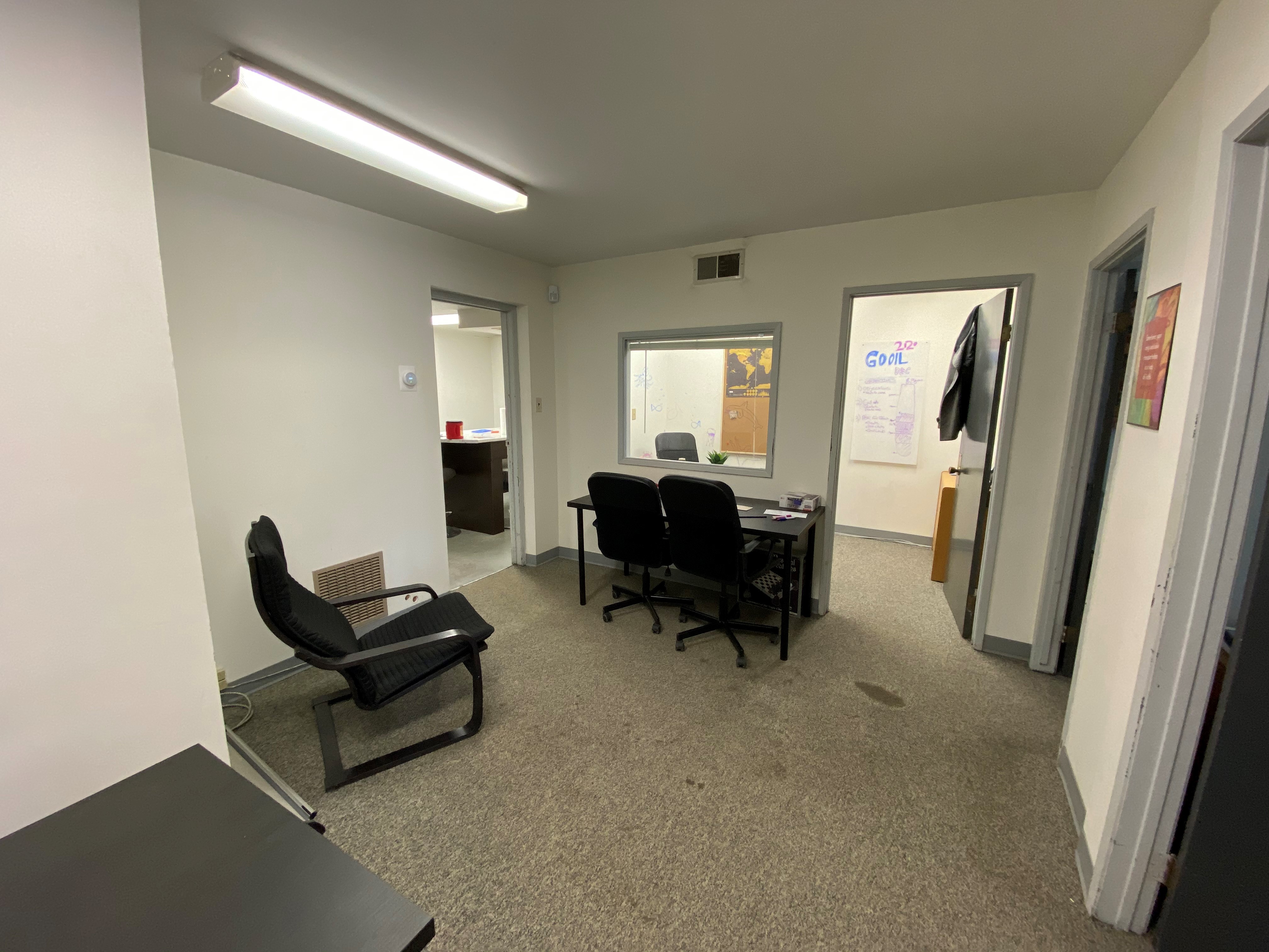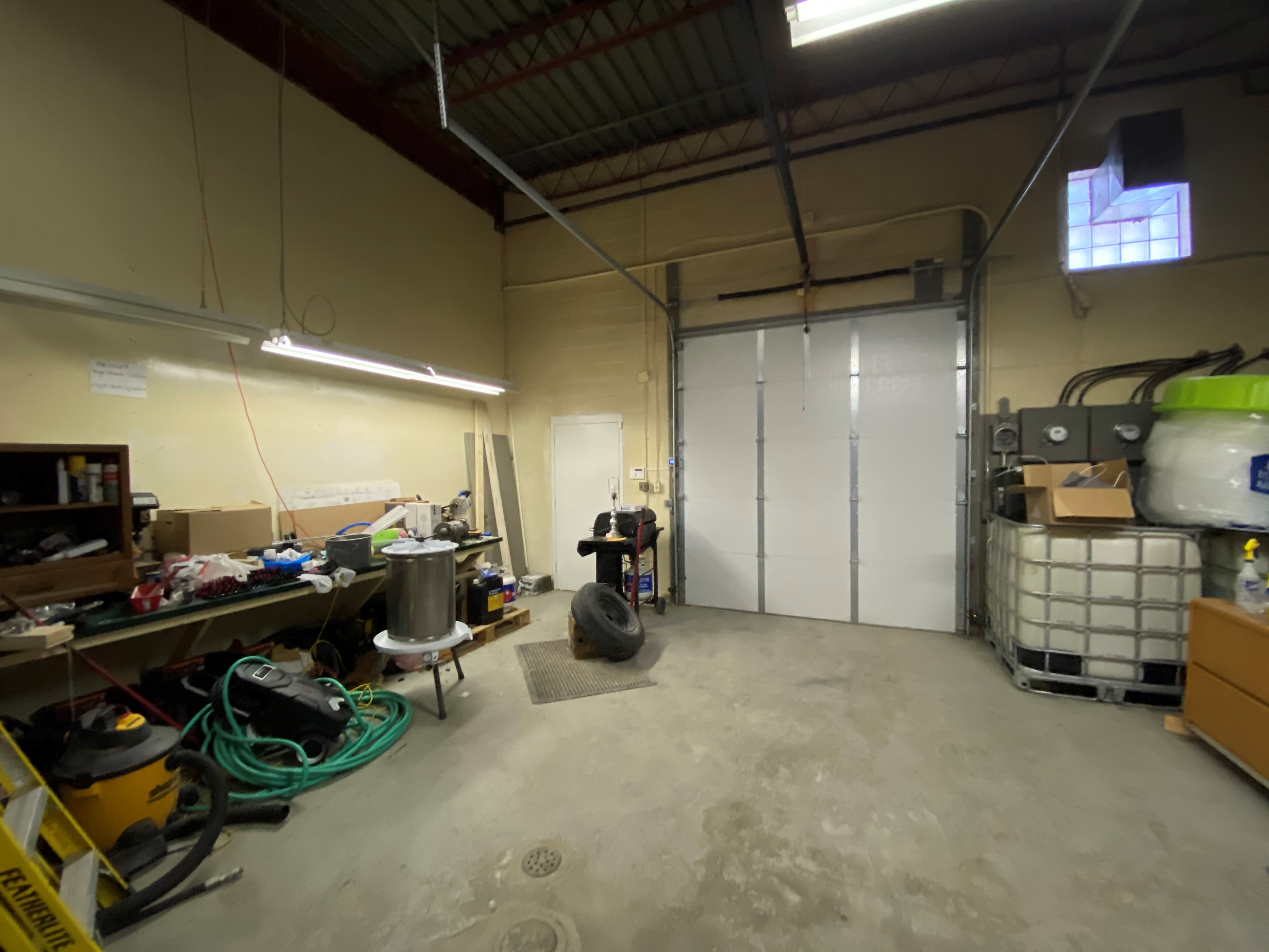 Office/ warehouse combination. Zoned M1, front and rear entrances plus a 12 ft grade level overhead door, warehouse has approx. 16 ft ceilings, 200 amp single phase electrical service, 2 parking spots, electric baseboard heaters in office and upstairs space over office area. Overhead gas heating unit in the warehouse.
