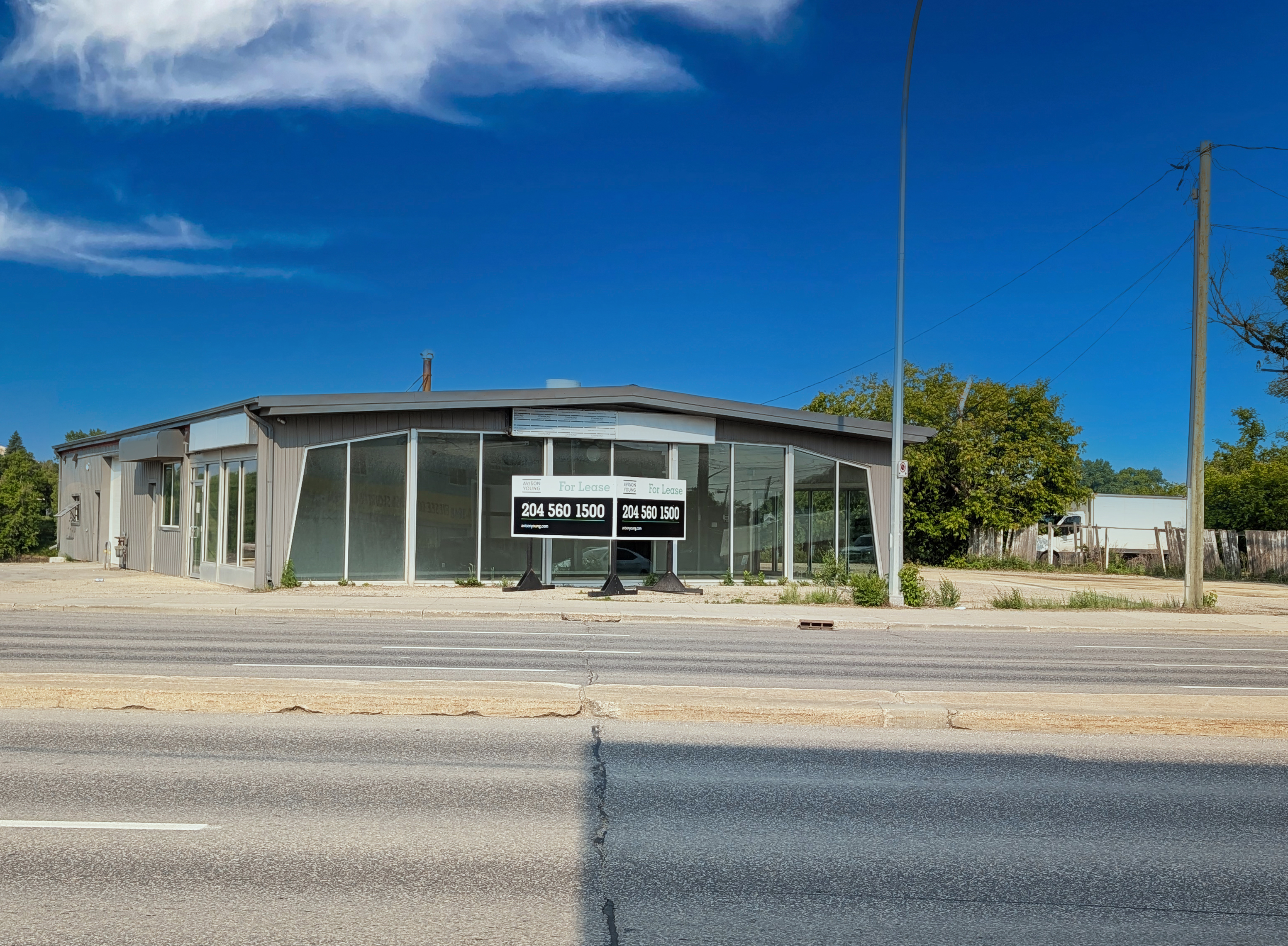 Located in St. Vital on busy St Mary’s Road, this property features a large parking lot on both sides of the building, scenic river views, a bright showroom office and large sign boxes.