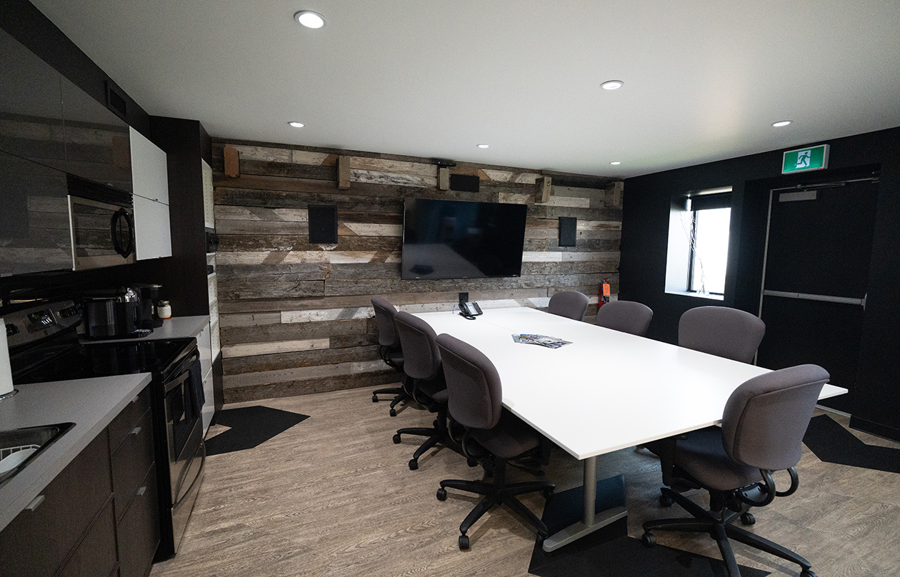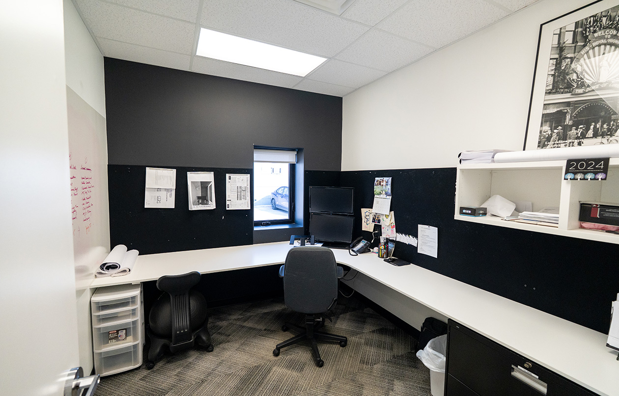 Tenant relocating! Includes existing furniture, modern kitchen with appliances, three private offices, open-concept workstations, boardroom, and two single washrooms. Features two grade-level overhead doors, prominent exterior signage, and over 10 free fenced parking stalls plus additional street parking.