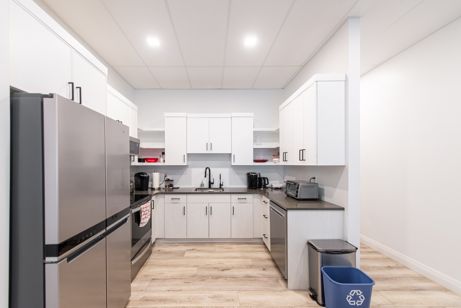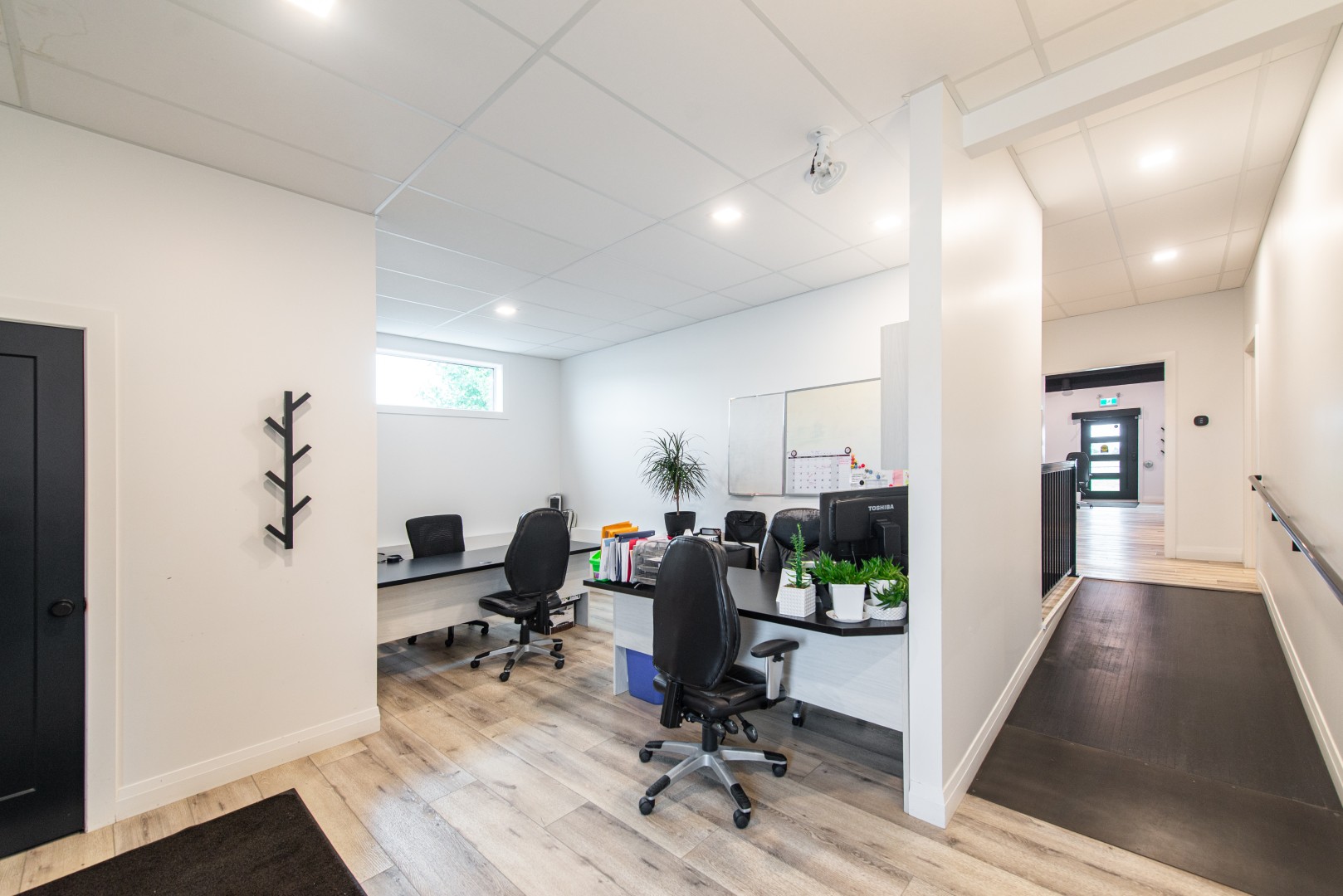 Opportunity to lease in a shared office environment, with use of all common areas included. Common areas include the lobby, printer area, lunchroom, and 2 washrooms (see floorplan). This office building is in an excellent location with great curb appeal and visibility from 1st Street. The entire space is fully furnished including kitchen with appliances, boardroom with table and chairs and TV, front lobby furniture, and built-in desks for the offices. Available for immediate possession.
