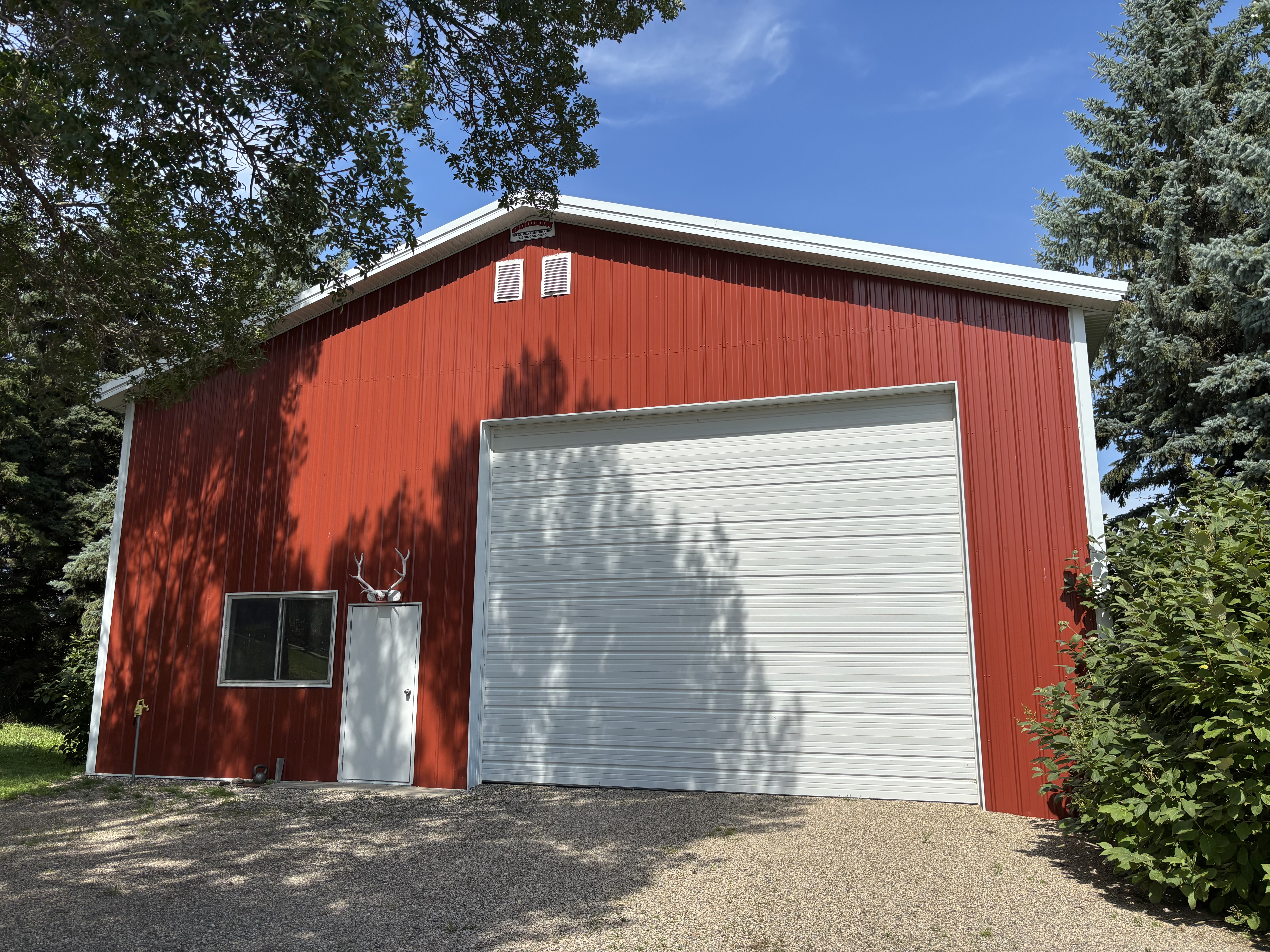 10 acre property with a 2725 sq. ft. two storey home with fully developed walk out lower level with attached 3 car garage adjacent 40'x60' storage facility and garden shed. Fully landscaped and well treed property on a gentle incline near the original townsite of Pilot Mound.
