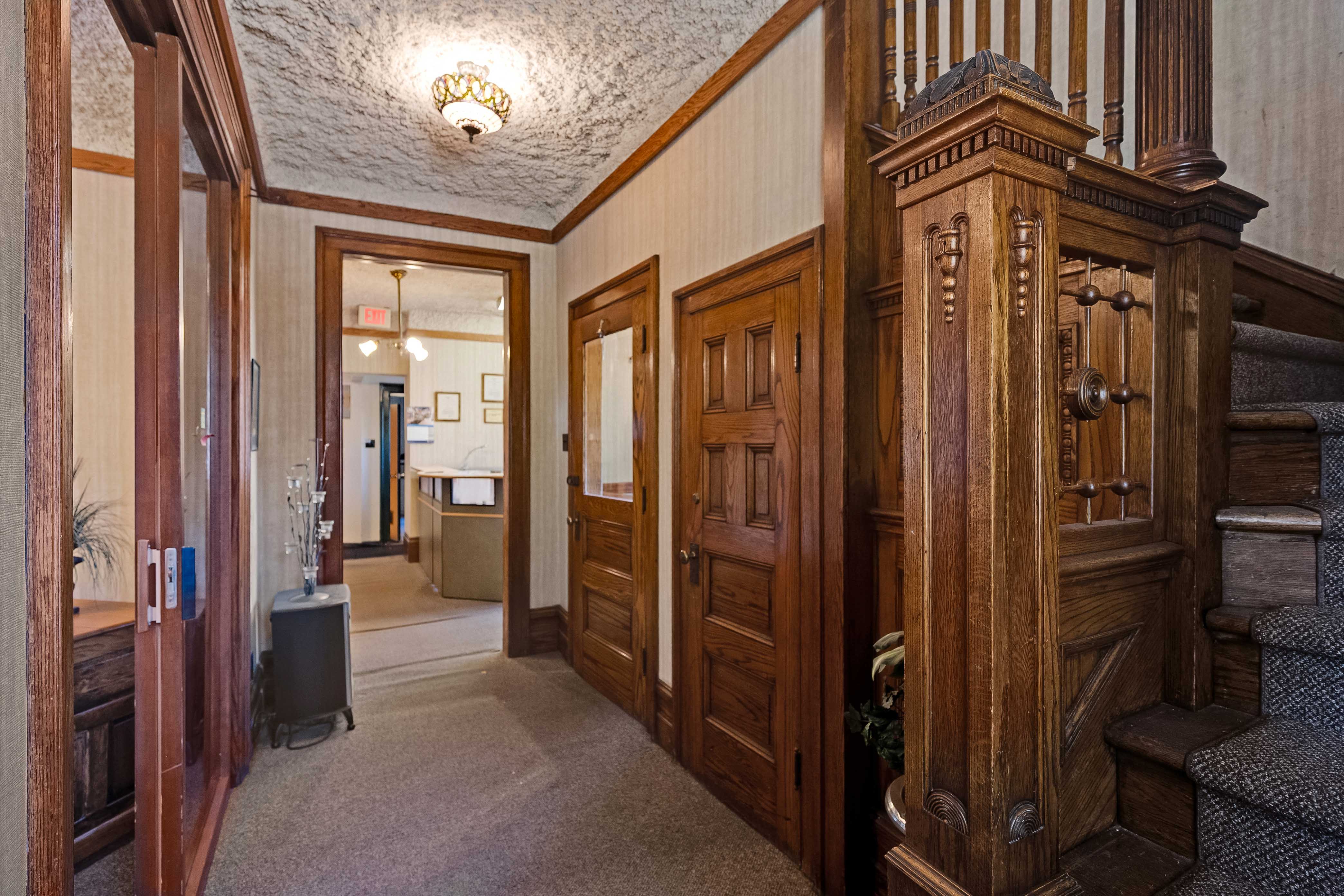 Rare opportunity to own a piece of history in the heart of downtown, just steps from the river! This stunning Queen Anne Revival property, with long-time ownership since 1977, has been thoughtfully converted into professional office space throughout while preserving its original character and craftsmanship. Inside, you’ll find beautiful woodwork, spacious offices, three bathrooms, and plenty of natural light — plus a charming balcony that enhances the building’s appeal. Both the upper level and the fully renovated basement (2020) feature their own private entrances, creating excellent opportunities for additional lease income or flexible use. Practical updates have been completed for peace of mind, including newer carpeting, electrical, heating system, shingles, hot water tank, and more. Outside, there is ample parking with space for 10 vehicles at the rear of the property. Whether you’re looking for an investment opportunity or a unique space for your own business, this property delivers unmatched charm