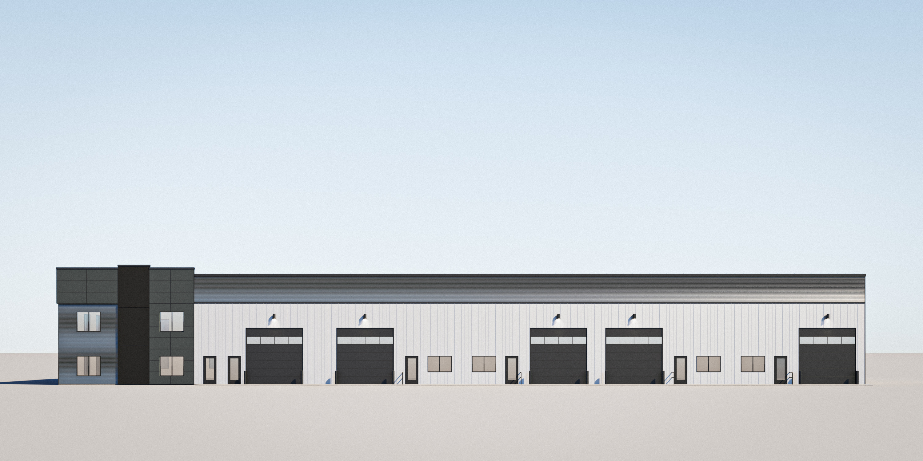 The building will feature four 2,500 sq. ft. units, each equipped with one overhead grade door, built-out washrooms, and the flexibility to customize office space to meet individual requirements.
