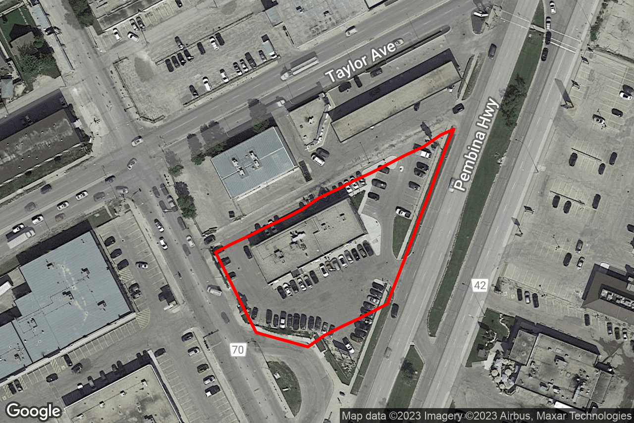 Located at the northwest corner of Pembina Highway and Stafford Street, a signalized intersection. Provides access from Pembina Highway, Stafford Street, and public lane. Pembina Highway is a major north/south route linking to the Central Business District (less than a 10-minute drive). Adjacent to the Blue Line (Southwest Rapid Transitway).