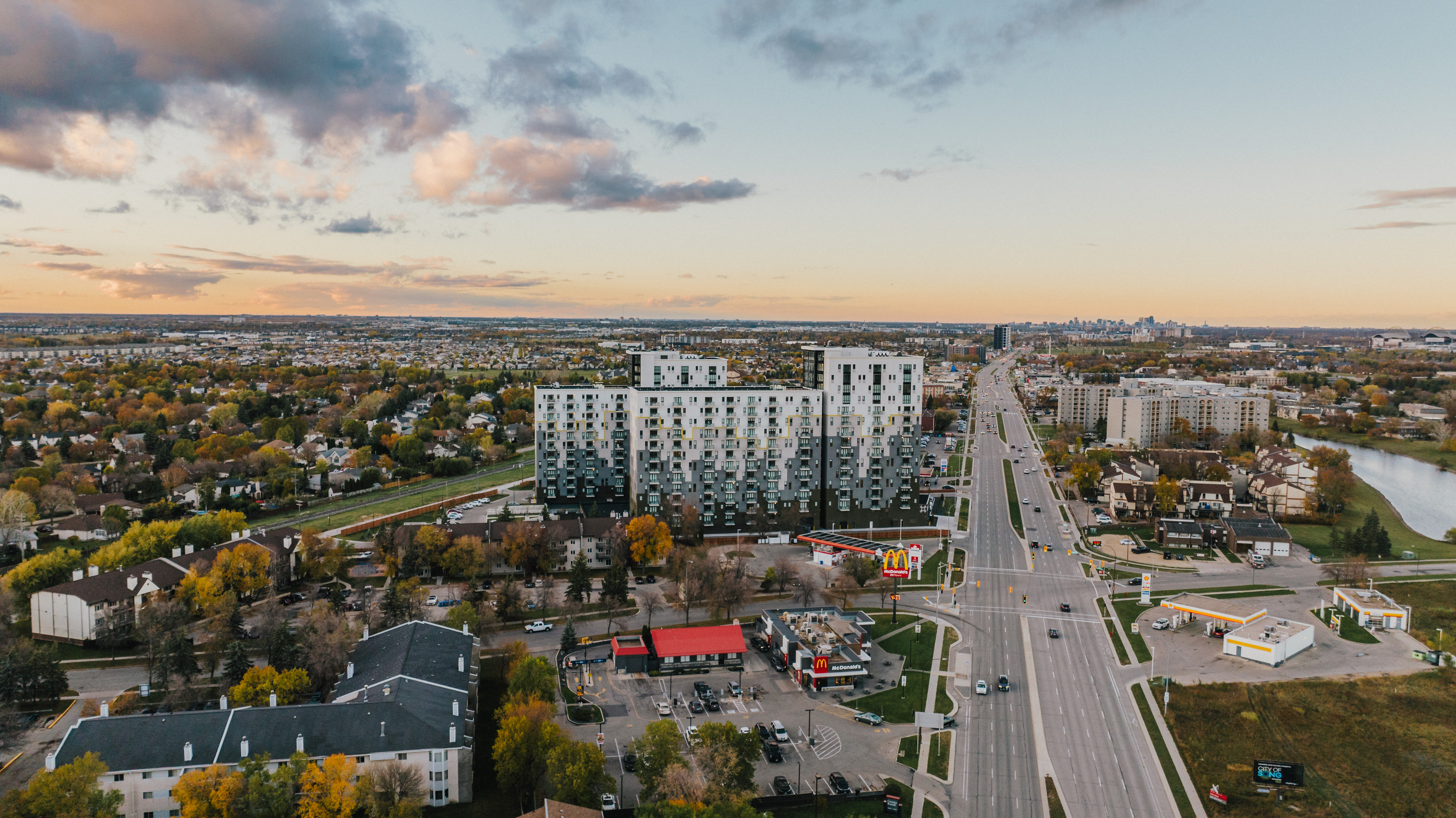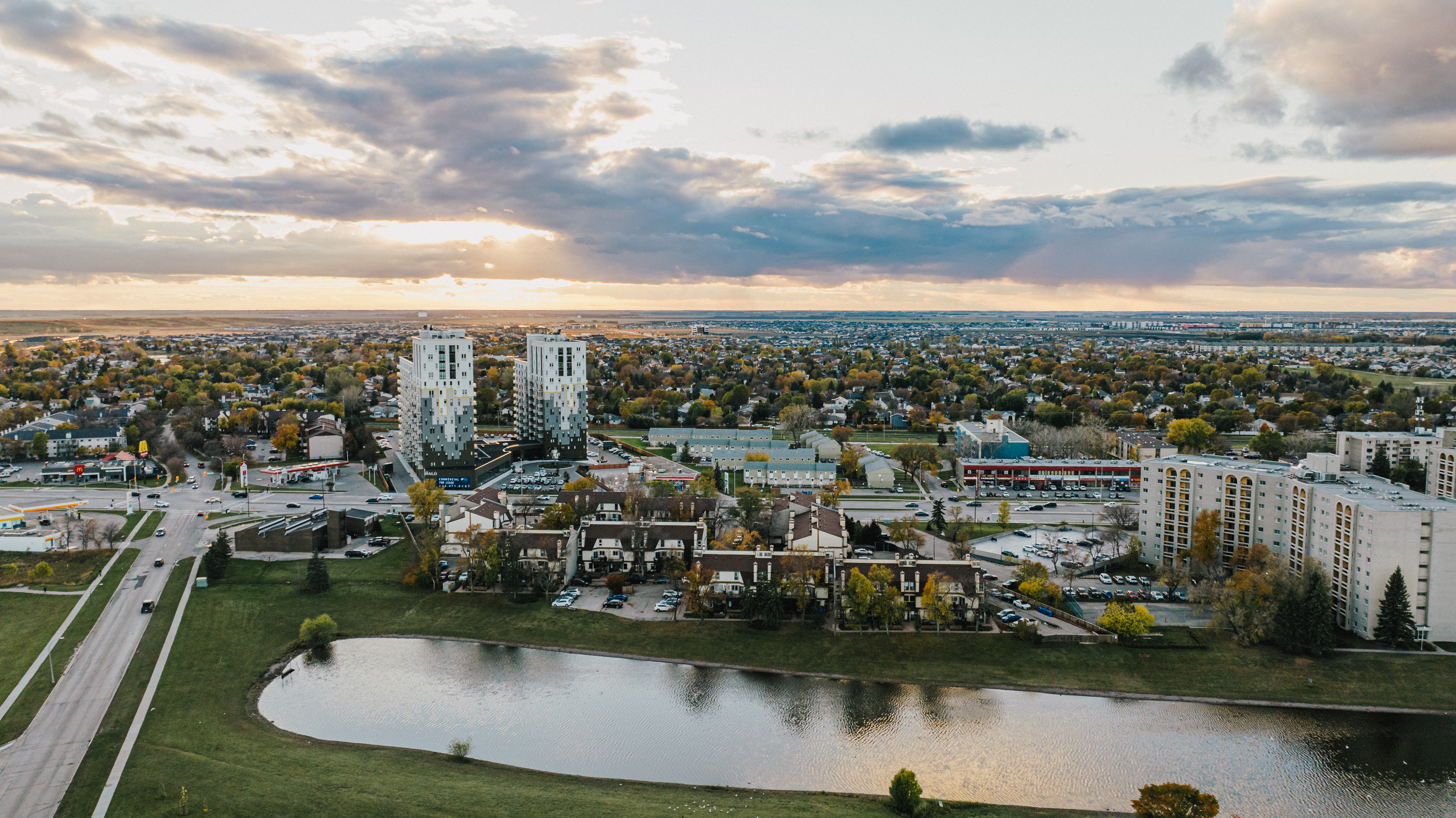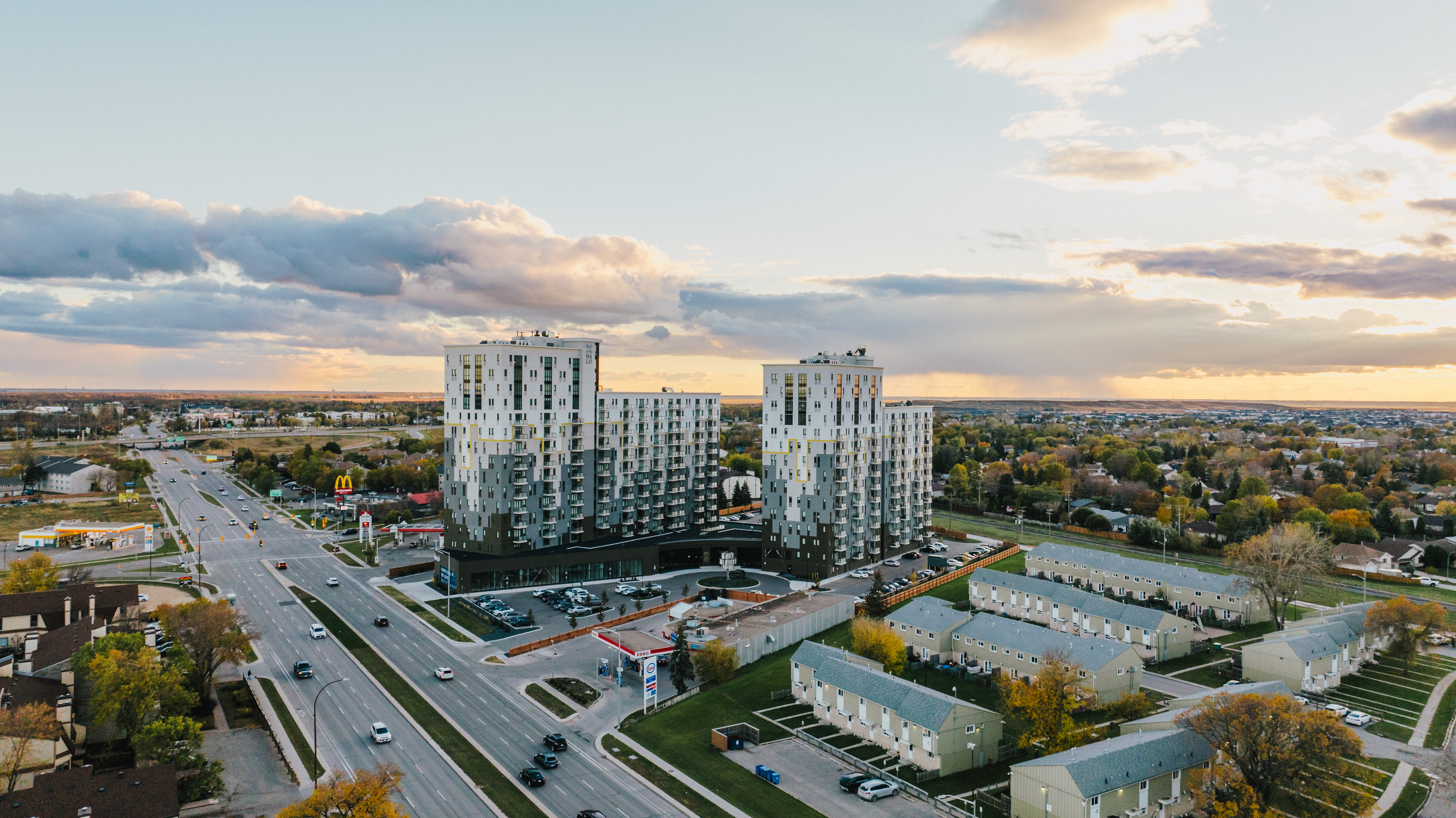 The Halo is perfectly situated between the two large, established surrounding neighbourhoods of Richmond West and Fort Richmond, in South Winnipeg. It is in close proximity to the University of Manitoba campus, Victoria Hospital, and is on a main transit route and thoroughfare. This location services the urban population in the south end of the city, as well as rural communities like St. Norbert, just outside the perimeter.