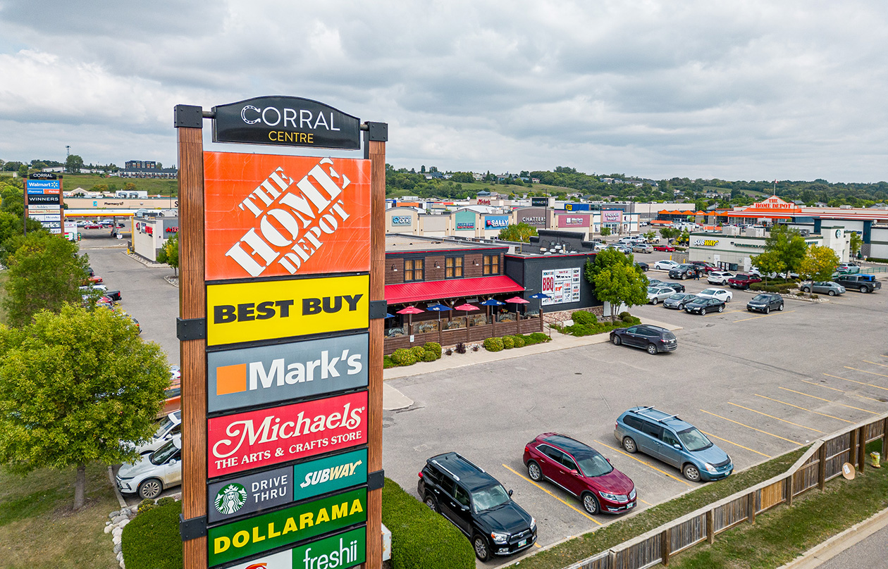 Corral Centre is a 500,000 sq. ft. retail and mixed-use power centre anchored by Walmart Supercentre, Home Depot, and Safeway. The centre draws consistent traffic from across Western Manitoba. The centre’s diversified tenant mix ensures steady customer traffic and broad regional appeal. The development also benefits from proximity to Brandon University, with a combined student and staff population of over 3,700. With Brandon’s diverse and steadily growing economy, expanding residential neighbourhoods, and a trading population of over 235,500, Corral Centre is well-positioned to meet current and future retail demand.
