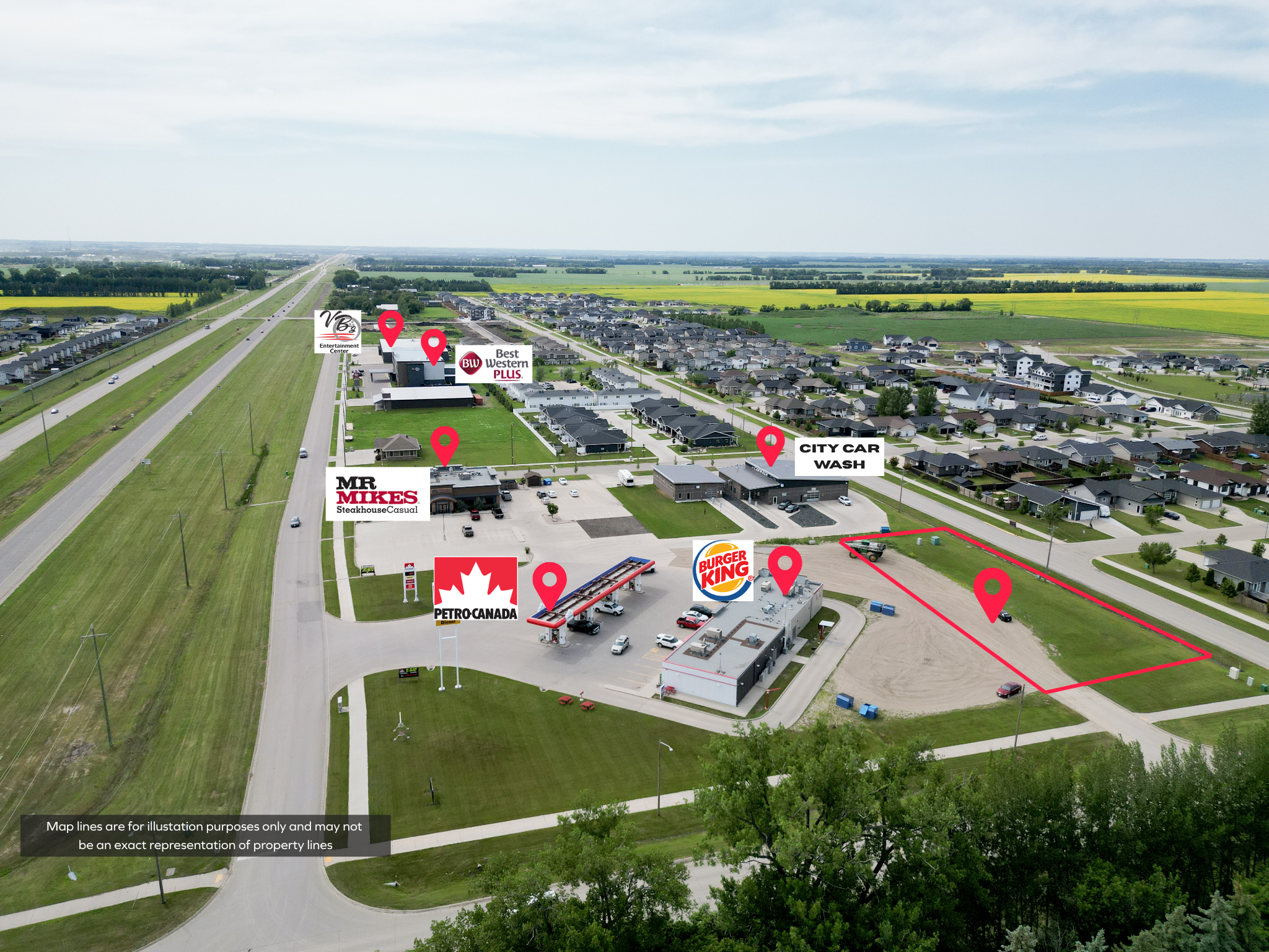 Commercial Lot in an outstanding location just off Diamond Dr and 15th St in Winkler fronting on to Highway 14. Excellent exposure for this prime development land. Booming area that has high traffic and easy accessibility. Opportunity to develop a retail site in one of Manitoba’s fastest growing cities with a strong local economic sector. Shared location with Burger King, Petro-Canada, City Car Wash and Mr. Mike’s Steakhouse.