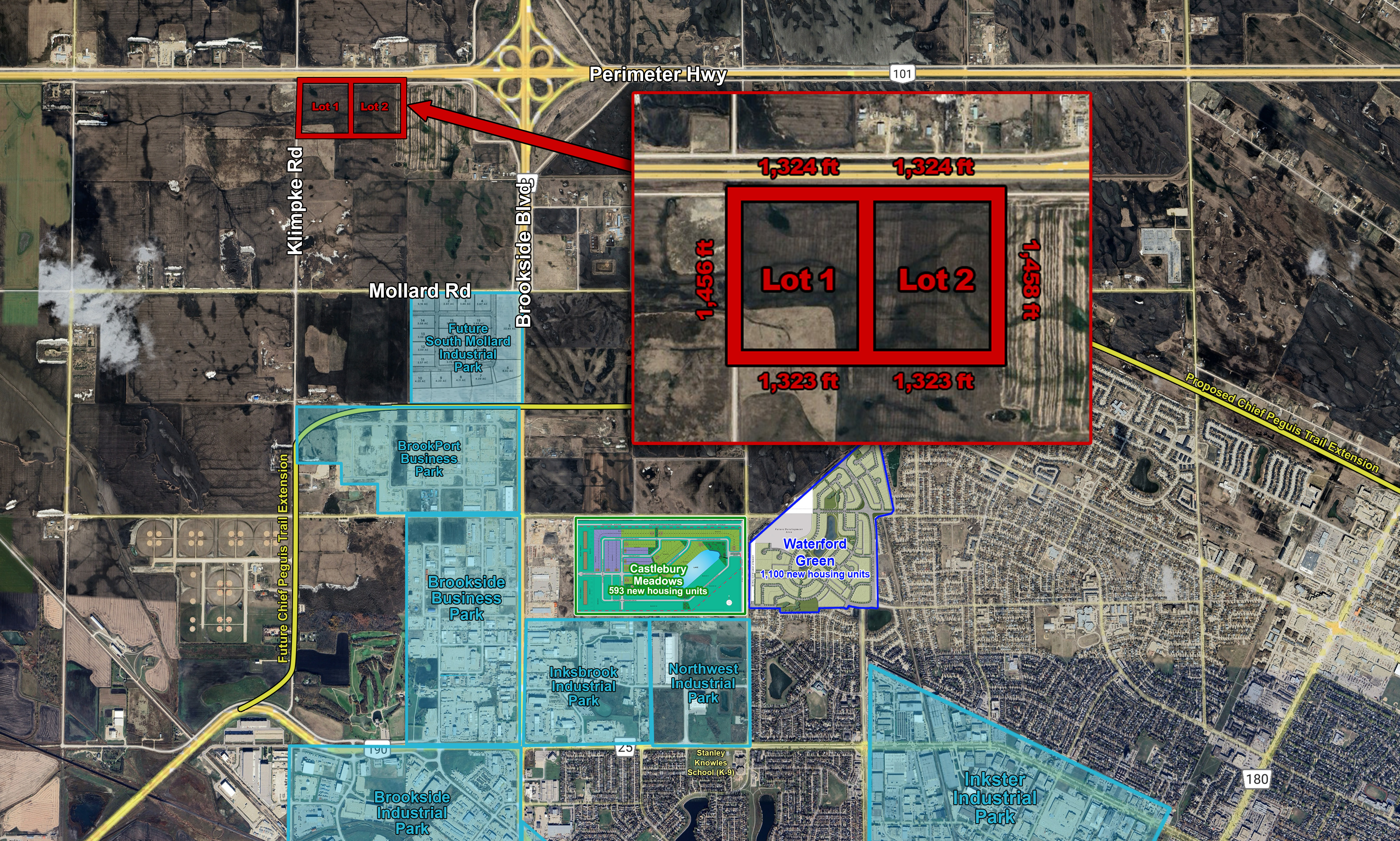 The site is near major cargo operations including some of Canada’s largest trucking operations and Winnipeg’s James Armstrong Richardson International Airport, a 24 hour operating airport. With direct access to Winnipeg via Brookside Boulevard, Perimeter Highway, and Highway 75 to the U.S.