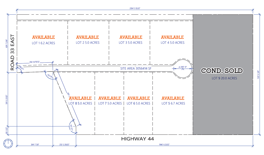 • Available: 5 acres to 42.9 acres on 8 separate lots.