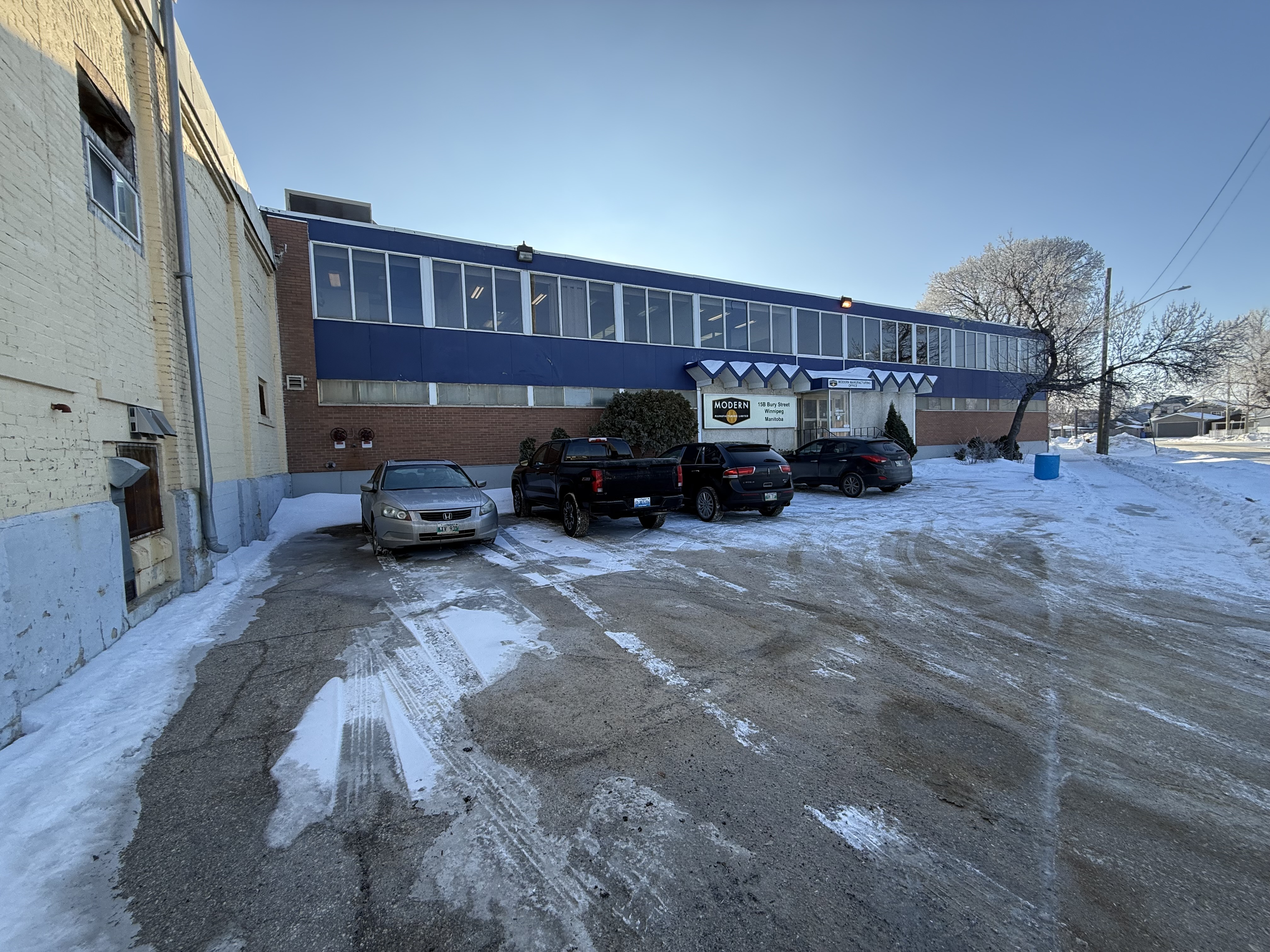 Strategically located along a major east–west artery in Winnipeg’s established industrial corridor, 15 Bury Street presents a rare opportunity to acquire a large-scale warehouse/manufacturing facility with significant yard capacity. Offering approximately 86,544 sq. ft. of total building area, including a +/- 7,757 sq. ft. second-floor office mezzanine, the property combines functional industrial space with a well-built office component featuring reception, private offices, meeting rooms, open workspace, and staff amenities. The warehouse offers up to 18’ clear ceiling height, two interior dock doors with levelers, two grade-level doors, heavy power (2000A and 1600A, 600/347V), and access to a crane—supporting a wide range of manufacturing and distribution operations. Situated on +/- 4.1 acres and complemented by a fully chain-link fenced compound of approximately one acre for outdoor storage and parking, the site delivers flexibility and scale rarely available in this location. Prominent front-facing sig