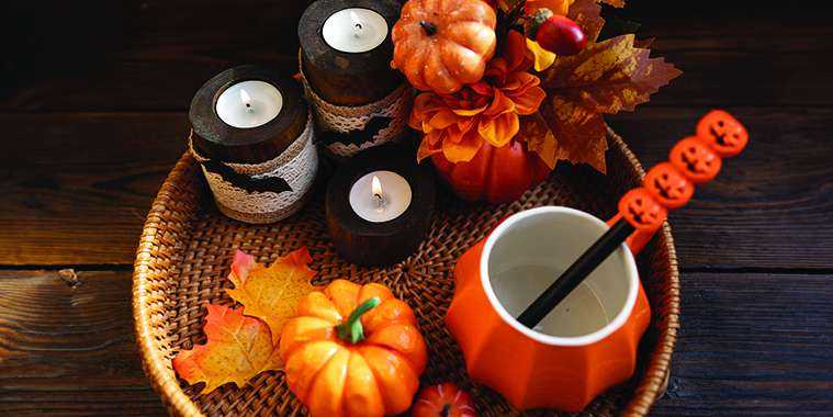 Set out orange or red mums in black pots and surround them with pumpkins and gourds. Instead of wrestling with sharp instruments, especially if you want to involve children, paint the pumpkins with fun designs, bats or classic Jack-o-Lantern faces. Add candles, and you have a welcoming but still festive front porch, kitchen island or fireplace focal point. Setting out a small dish filled with candy treats next to a carved pumpkin and a few LED candles is also a nice touch. Ask your REALTOR® if you’re unsure about which decorations are appropriate to leave out.