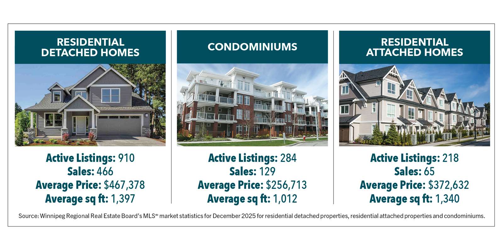 “2025 closed out with a new residential detached average price record for December which represents the third highest this year and on record,” said Michael Froese, 2025-2026 President of the Winnipeg Regional Real Estate Board. “December MLS® sales for All MLS®, residential detached and condominiums were at or above last year and the 5-year averages. Notably, residential detached average prices in 2025 broke monthly records in every month except November, while condominium average prices broke monthly records in every month except for January, April, August and December.”