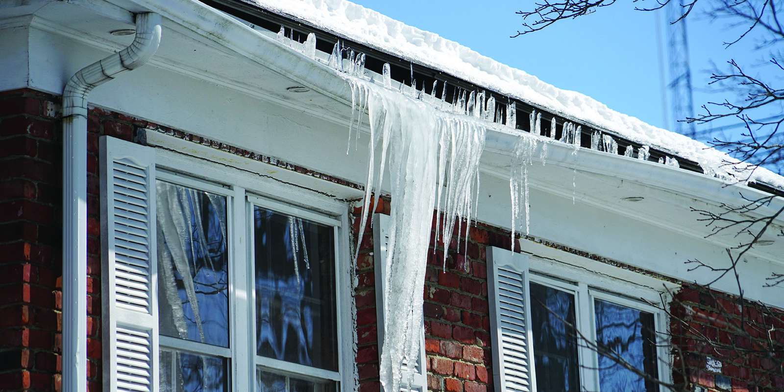 When it comes to ice damming, look out for long icicles that build up off the edge of your home’s roof.