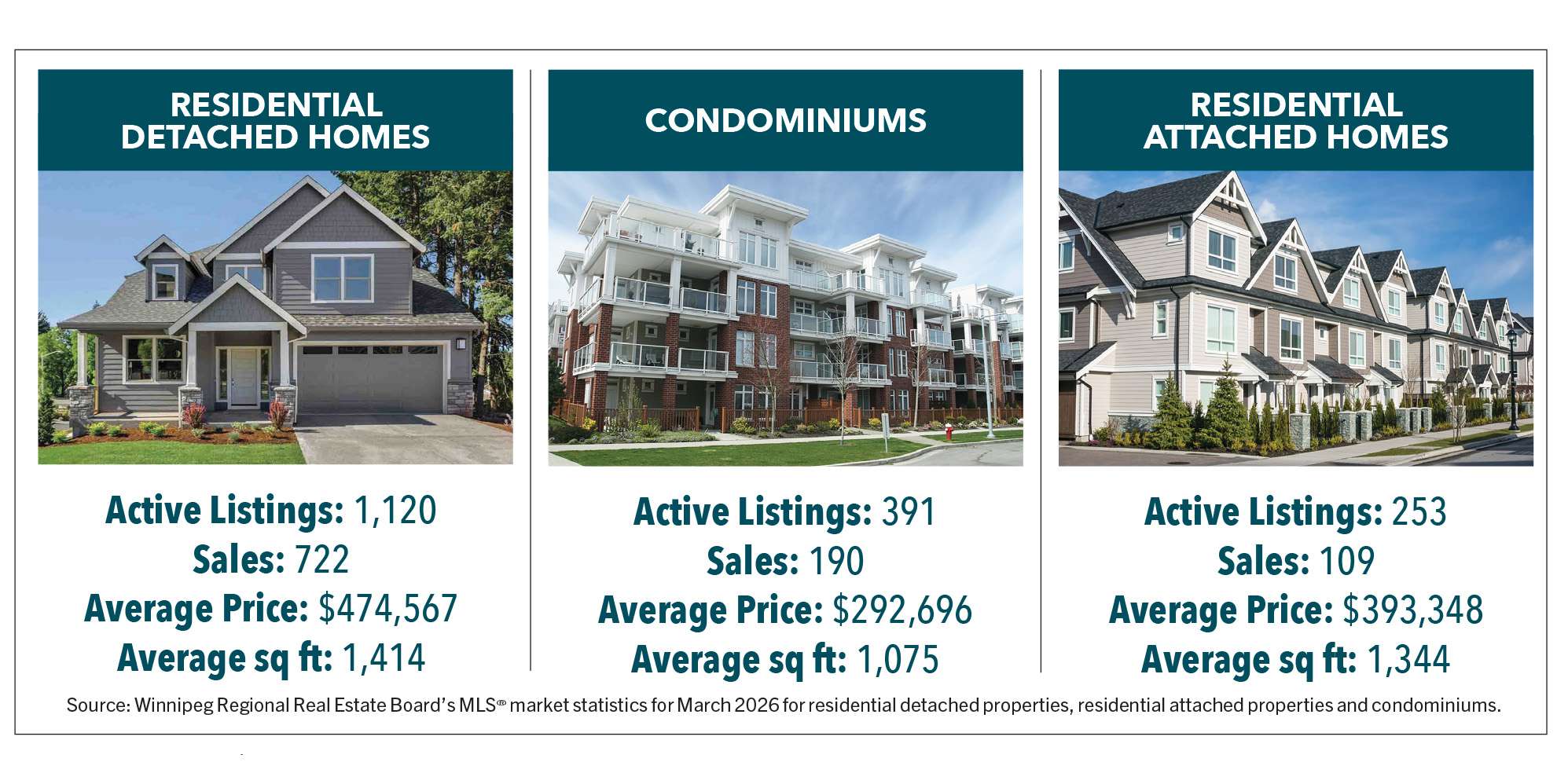 “Residential detached and condominium average prices were the highest on record for March and Q1,” said Dan O’Brien, 2026-2027 President of the Winnipeg Regional Real Estate Board. “After slower MLS® sales in January and February, March sales picked up en route to the third highest March total in the last five years. Inventory continues to be low and is contributing to higher prices, but with warmer temperatures on the horizon, we anticipate more listings will come to the spring market.”